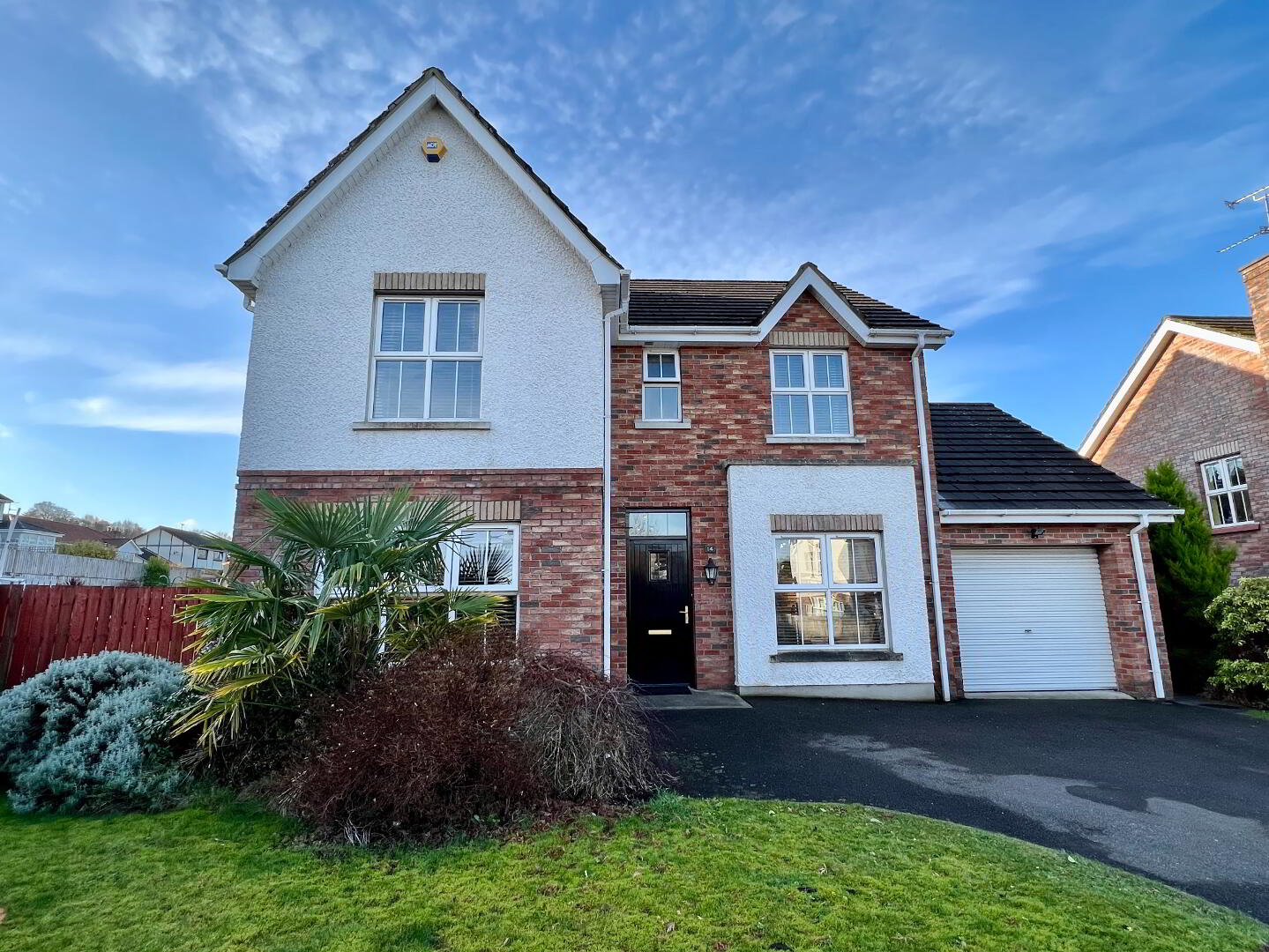 Garden to front laid in lawn enclosed by fence and enhanced with plants and shrubs