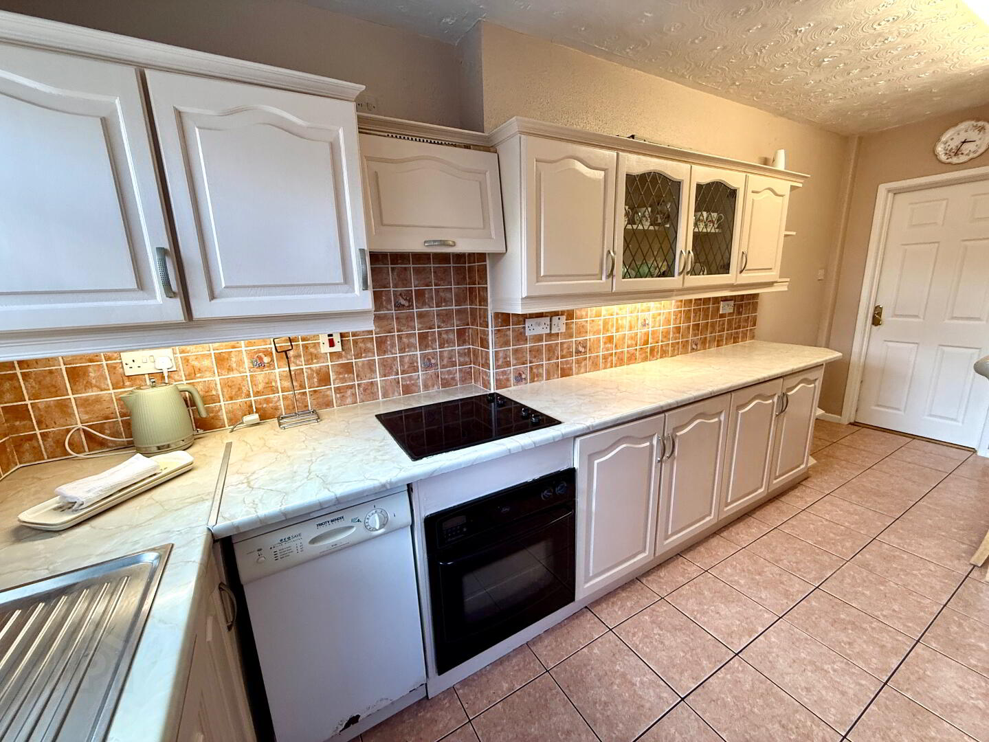 Kitchen/Dining 17'2 x 7' Eye and low level units, glazed display unit, hob, oven, 1 1/2 bowl stainless steel sink unit with mixer tap, plumbed for dishwasher.