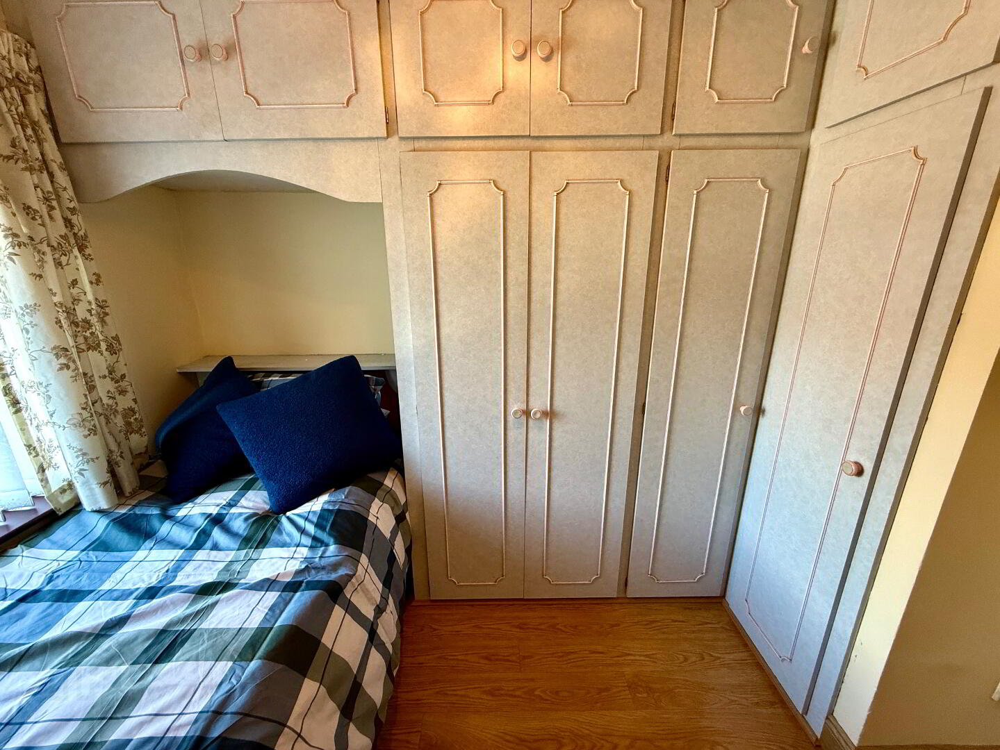 Bedroom 3 10'5 x 7'2 (to widest points) Built in wardrobes and shelves, laminated wooden floor.
