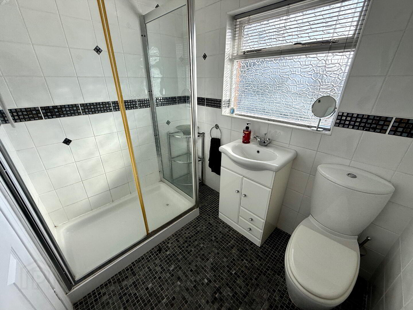 Shower Room Fully tiled walk in electric shower, wash hand basin and WC, fully tiled walls, tiled floor, heated towel rail.