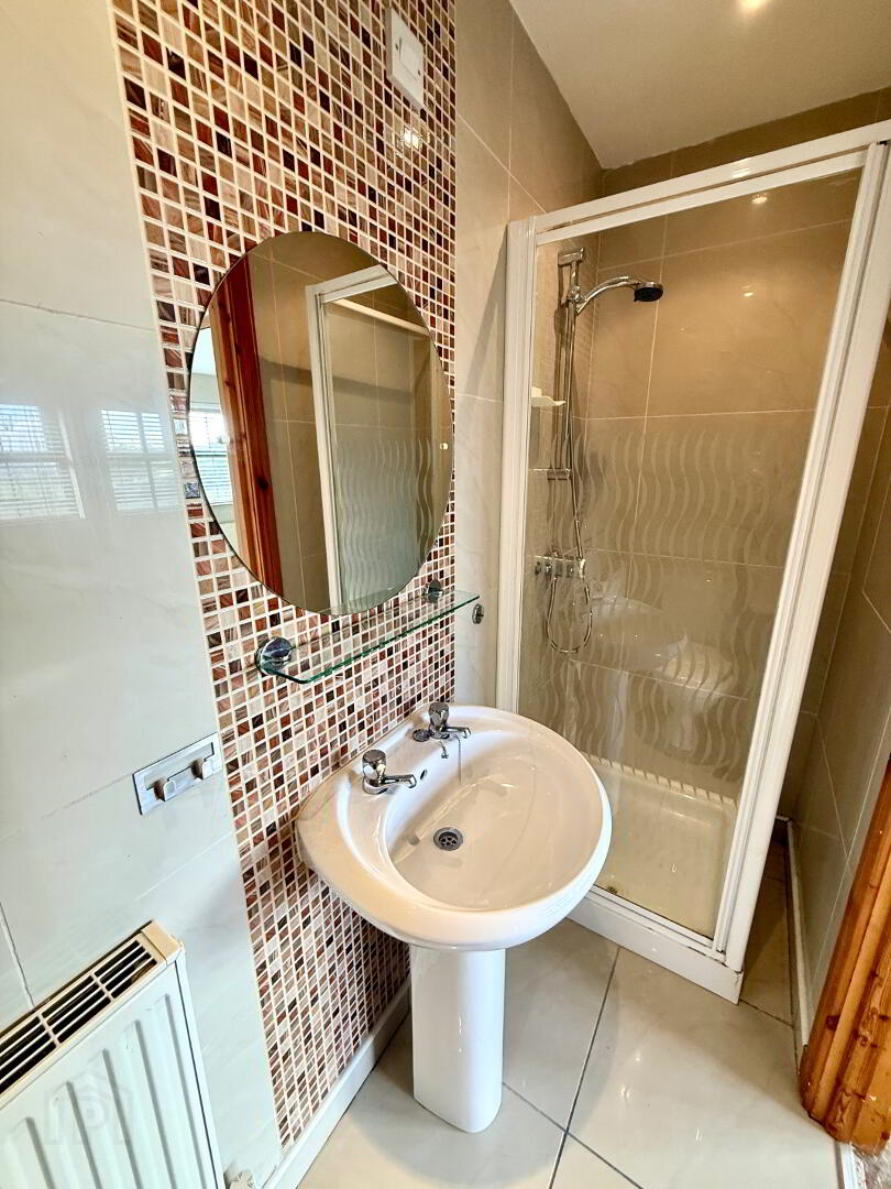 Ensuite Fully tiled walk in shower, wash hand basin and WC, fully tiled walls, tiled floor.