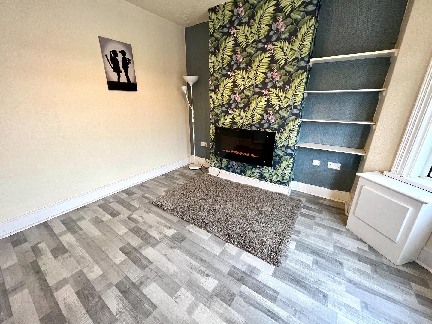 Lounge  11'9 x 9'11 (to widest points)  Bay windows, wall mounted electric fire, laminated wooden floor.