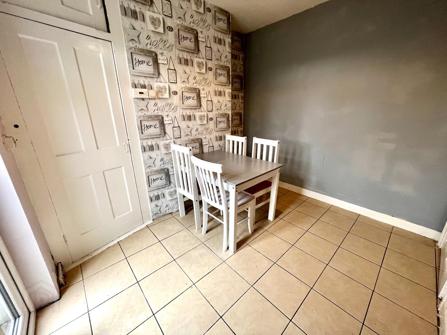 Dining Room  9'10 x 9'3 (to widest points)  Tiled floor, double patio doors.