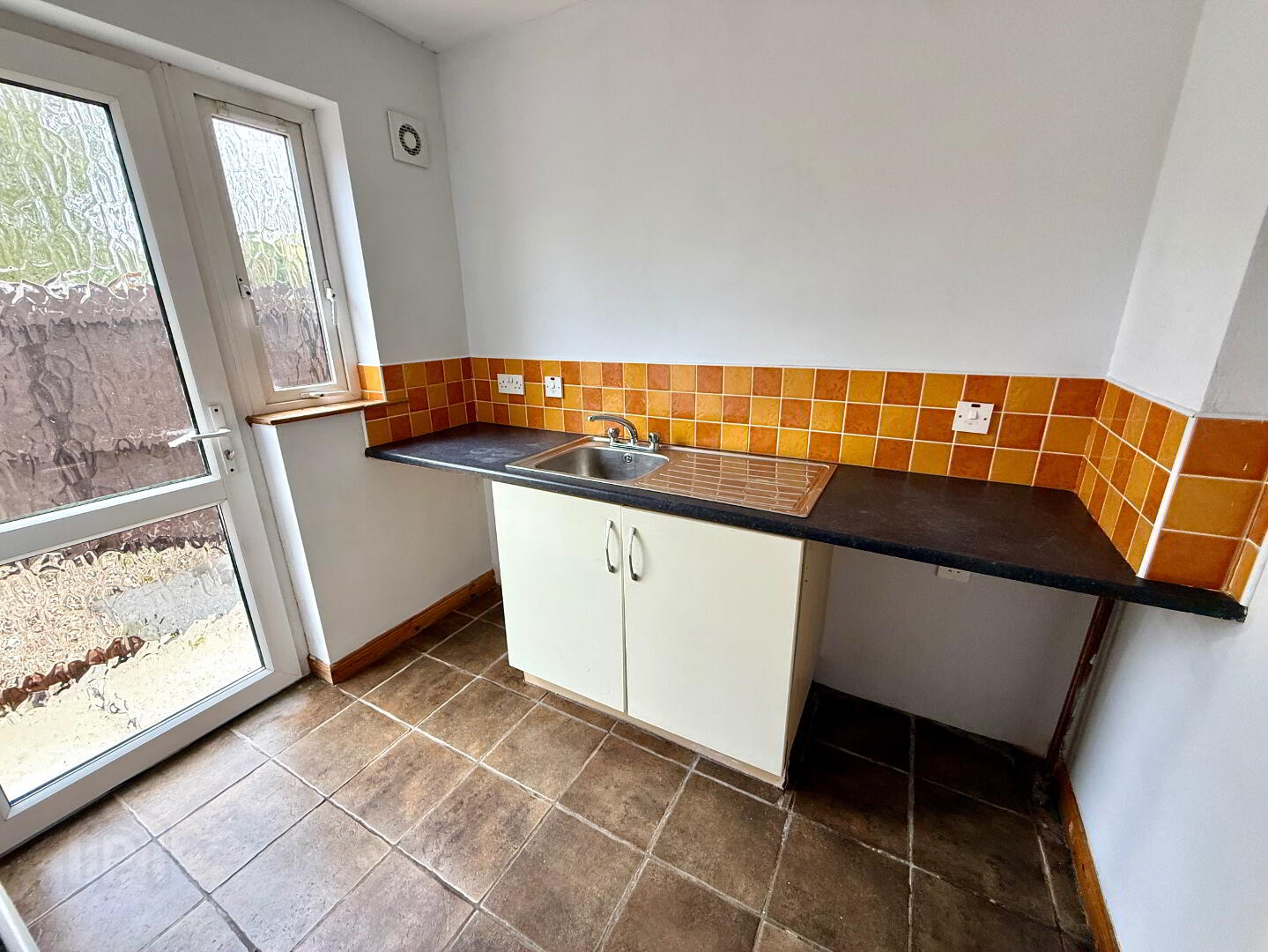 Utility Room Low level units, single drainer stainless steel sink unit with mixer tap, partly tiled walls, tiled floor, plumbed for washing machine, Space for tumble dryer.