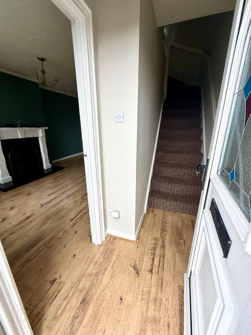 Entrance Hall with laminated wooden floor.