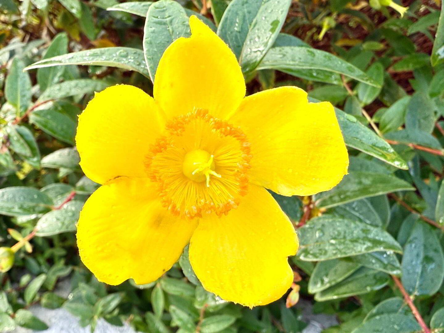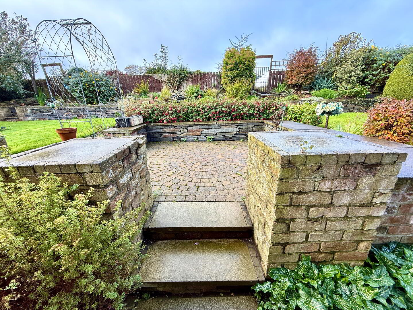 Neat garden to rear laid in lawn enclosed by hedge and fence, stocked with an abundance of plants and shrubs.