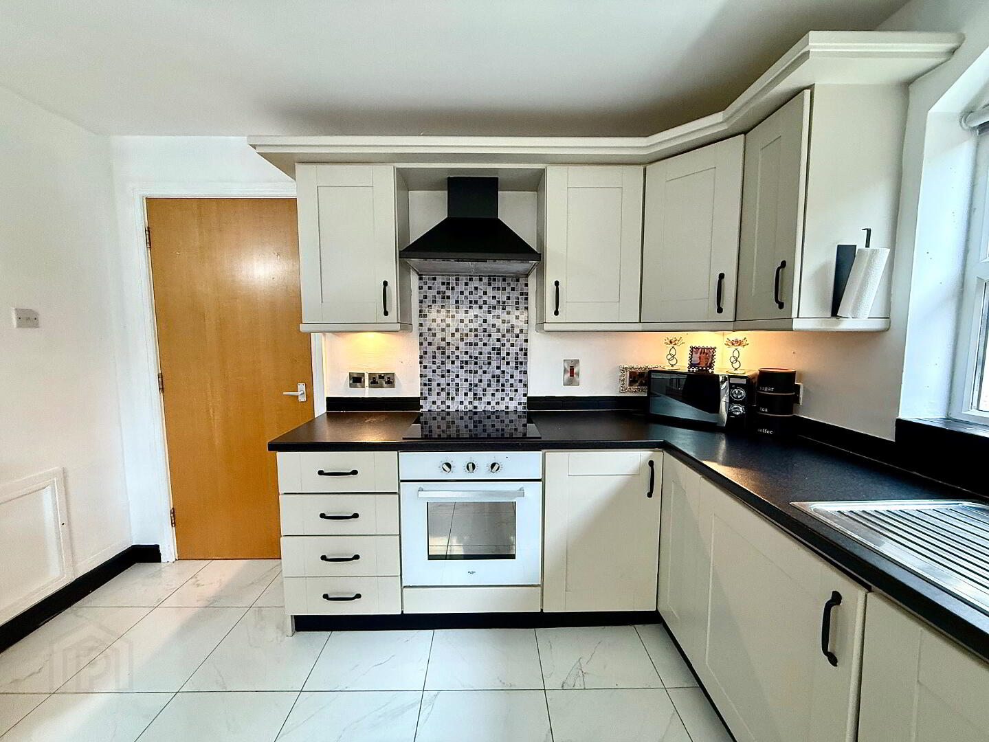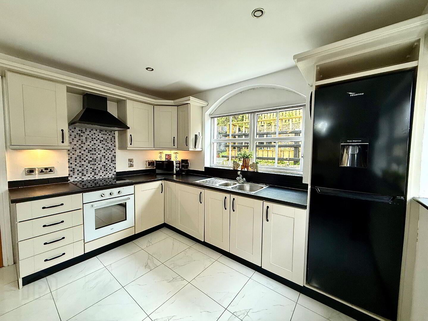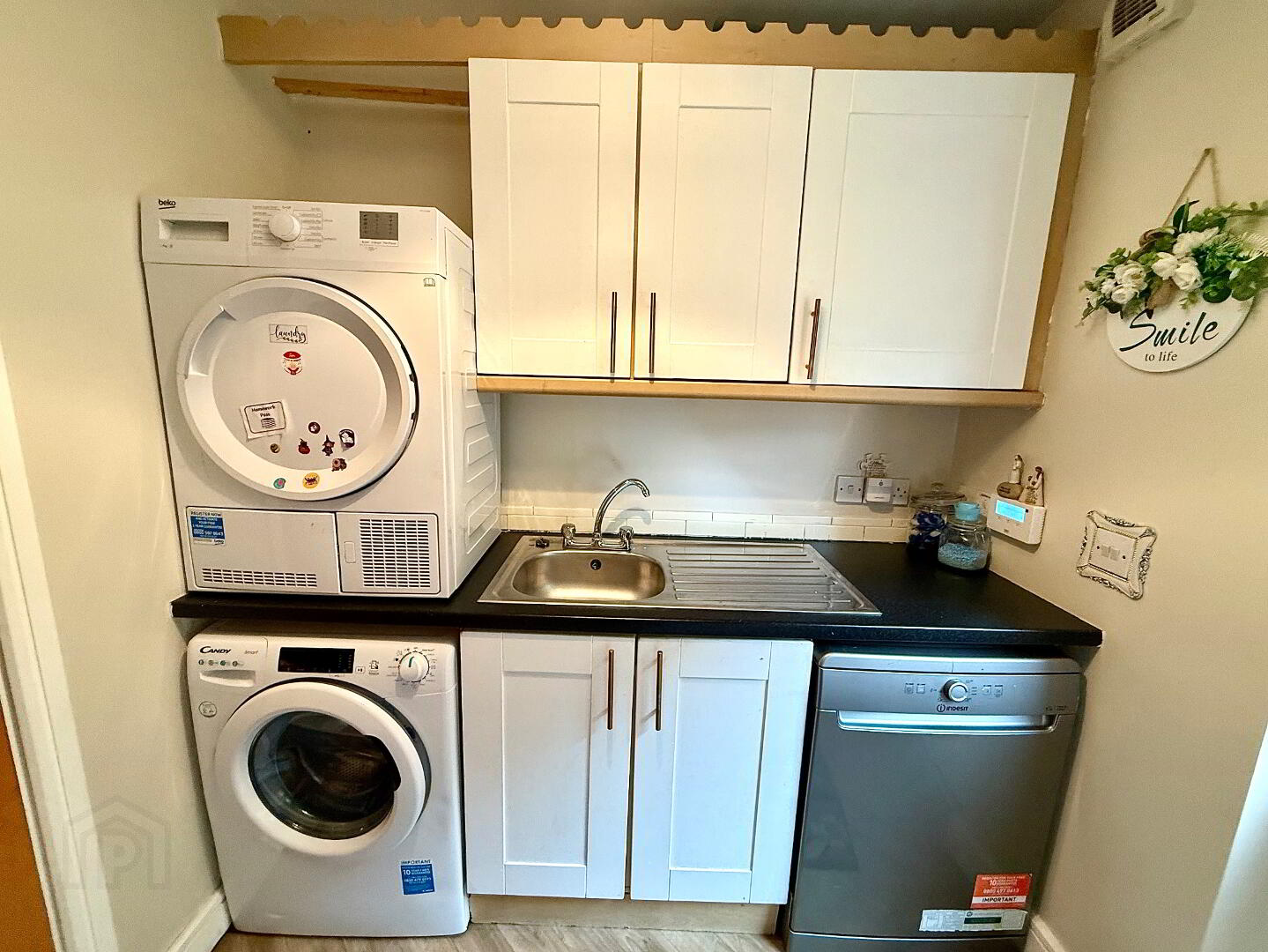 Utility Room Eye and low level units, single drainer stainless steel sink unit with mixer taps, plumbed for washing machine, space for tumble dryer, plumbed for dishwasher.