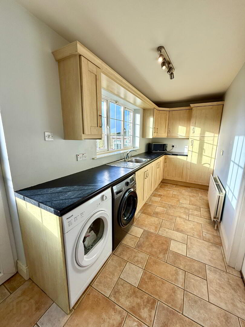 Utility Room 16'9 x 5'10 (to widest points) Eye and low level units, stainless steel sink unit with mixer tap, plumbed for washing machine, space for tumble dryer, tiled floor.