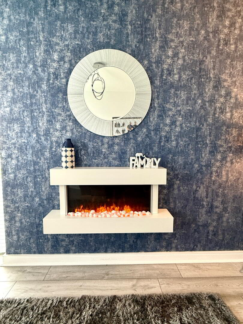 Lounge 16'3 x 11' Dual aspect, wall mounted electric fire, laminated wooden floor.