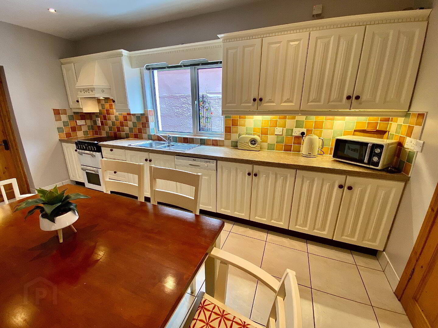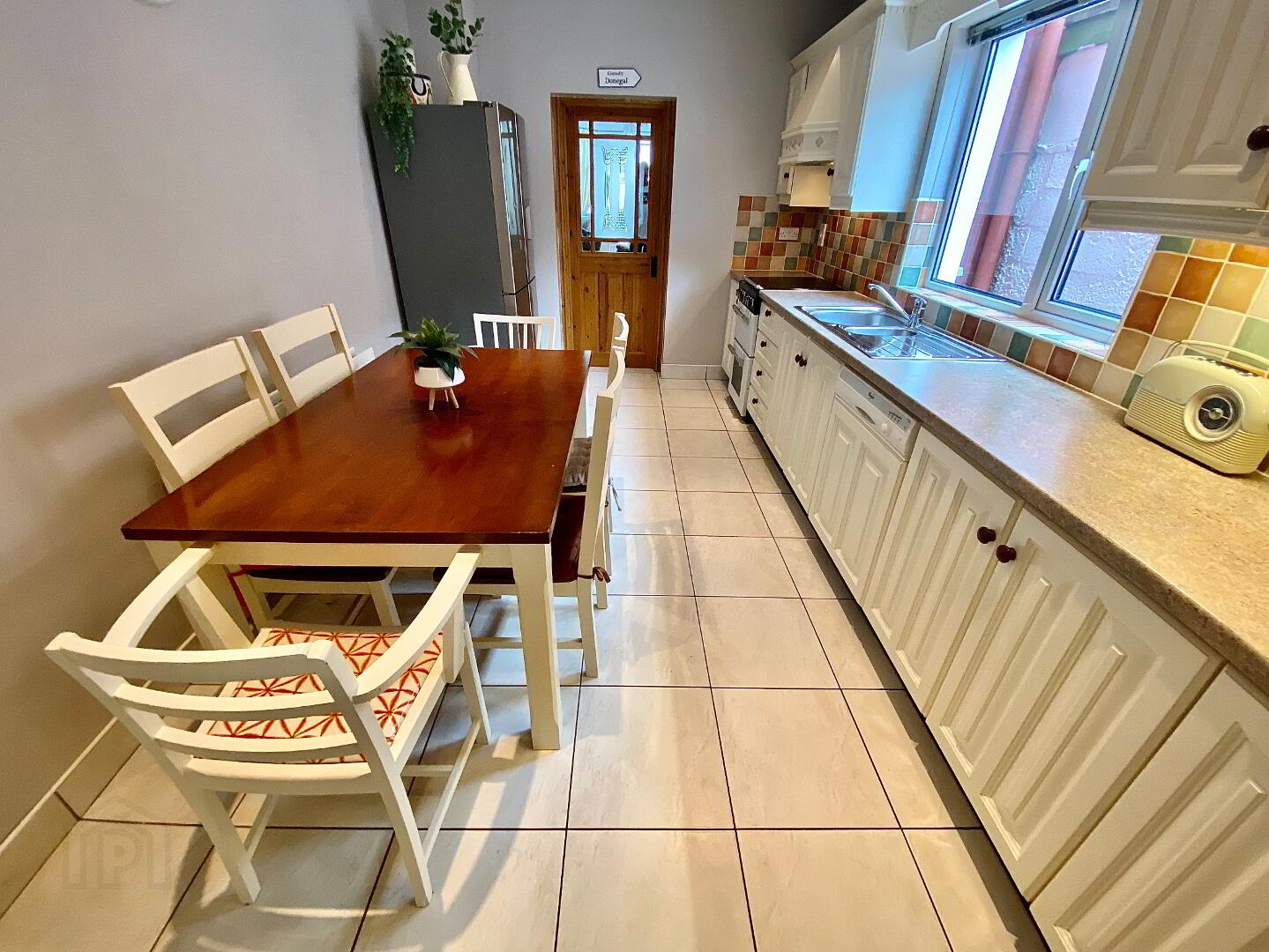 Kitchen/Dining 15'7 x 9'3 Eye and low level units, 1 1/2 bowl stainless steel sink unit with mixer tap, wired for electric cooker, integrated dishwasher, partly tiled walls, tiled floor, recessed lighting