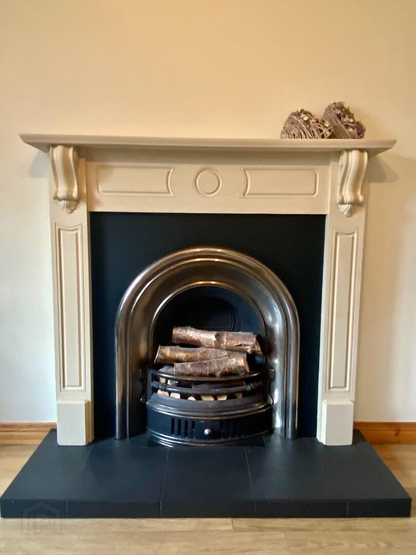 Family Room  14'5 x 11'8  Cast iron fireplace with wooden surround, laminated wooden floor