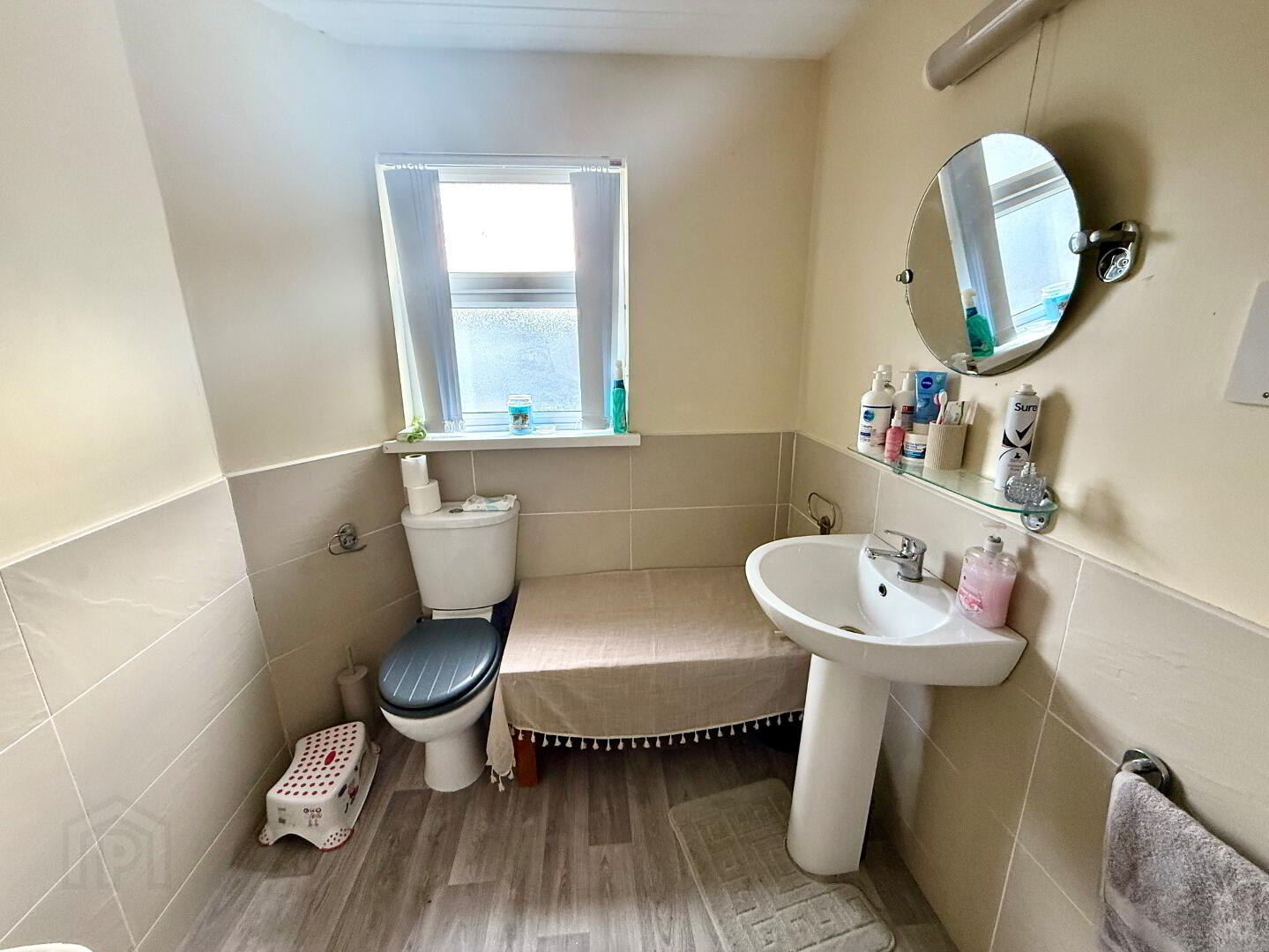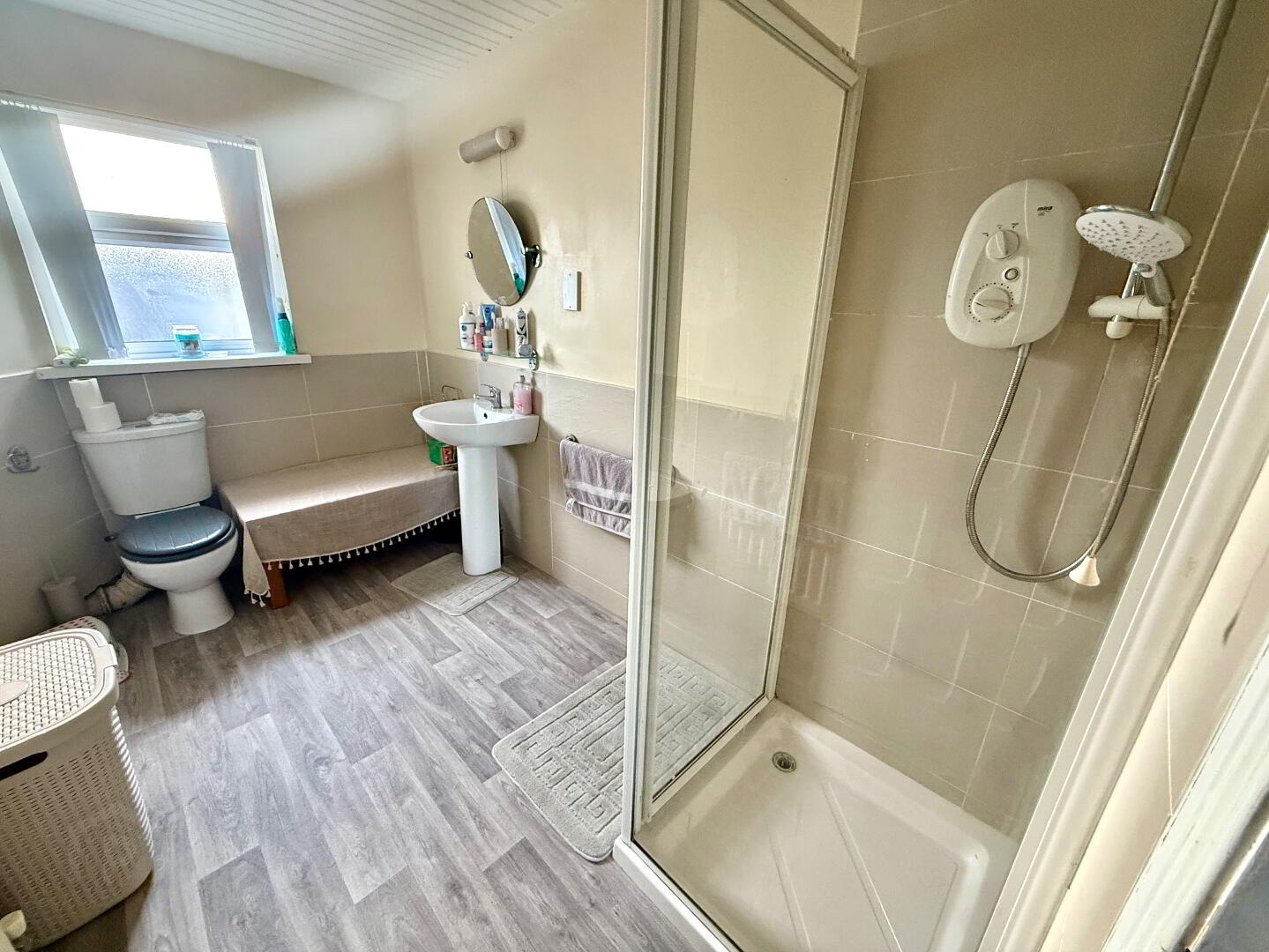 Shower Room Fully tiled walk in electric shower, wash hand basin and WC, partly tiled walls.