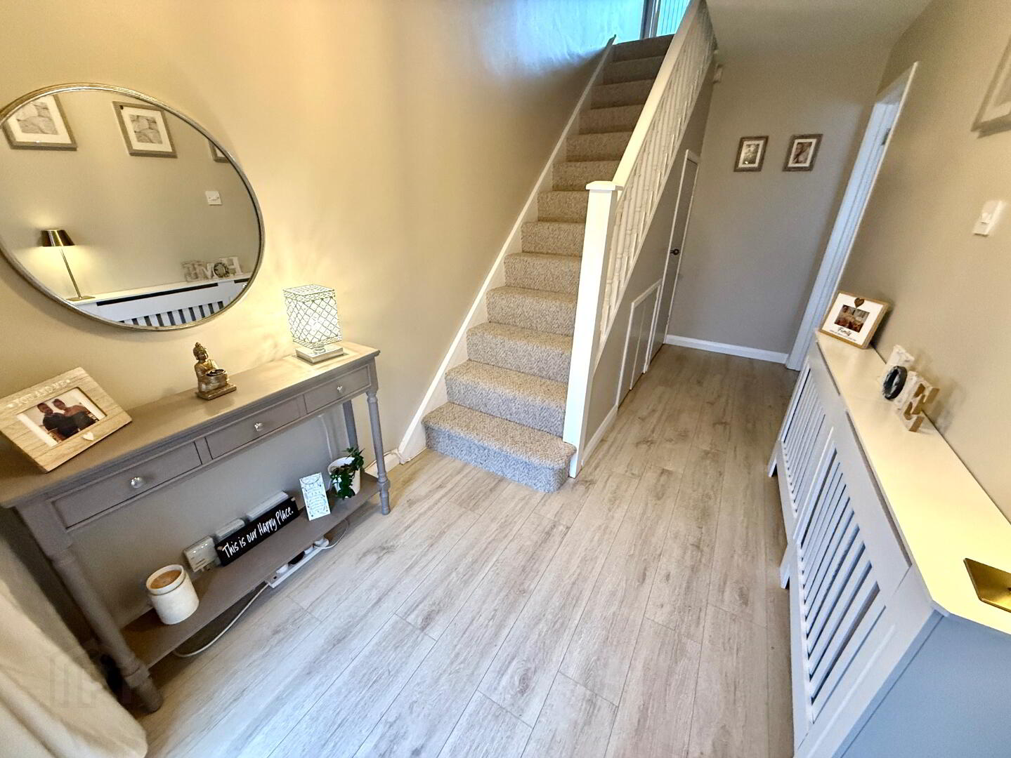 Entrance Hall with laminated wooden floor, understairs storage.