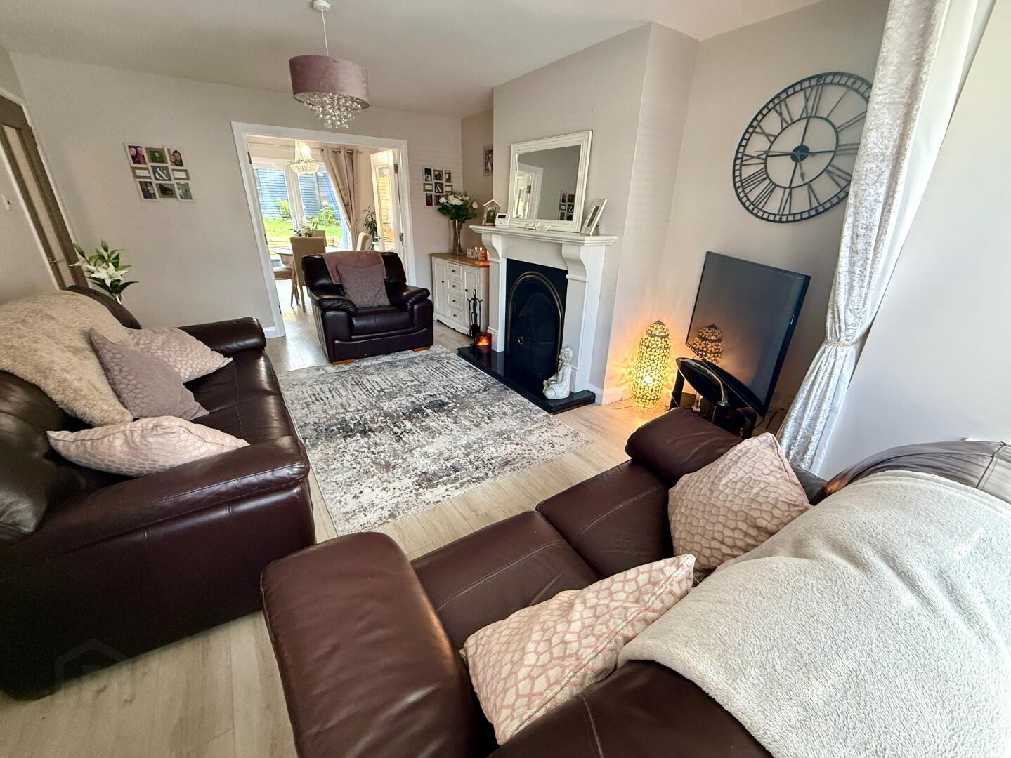 Lounge 17'6 x 12'2 (to widest points) Box Window, Cast iron fireplace with marble surround and granite hearth, double doors to kitchen/Dining.