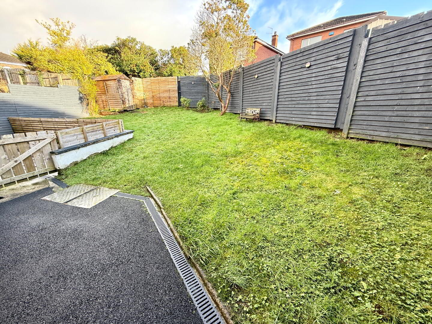 Garden to side and rear laid in lawn enclosed by fence.