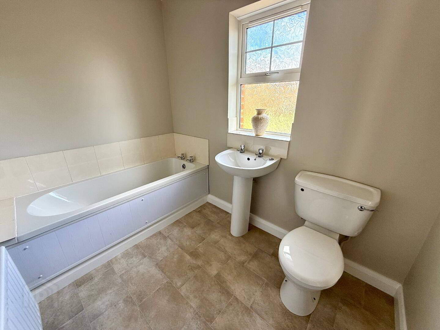 Bathroom Bath, wash hand baisn and WC, partly tiled walls.
