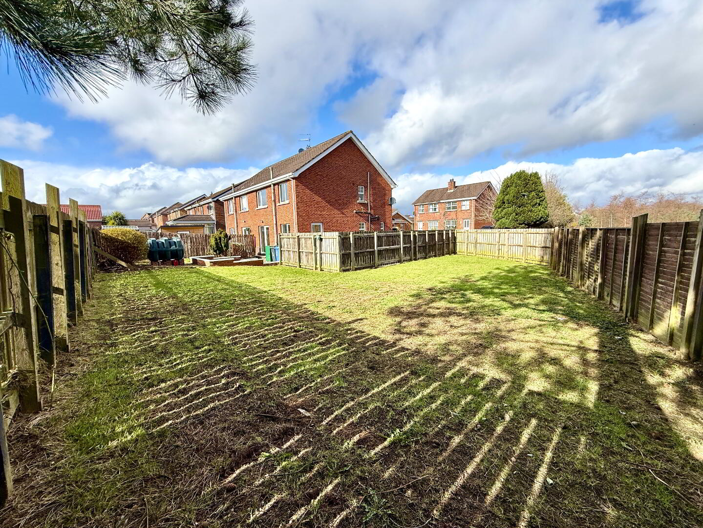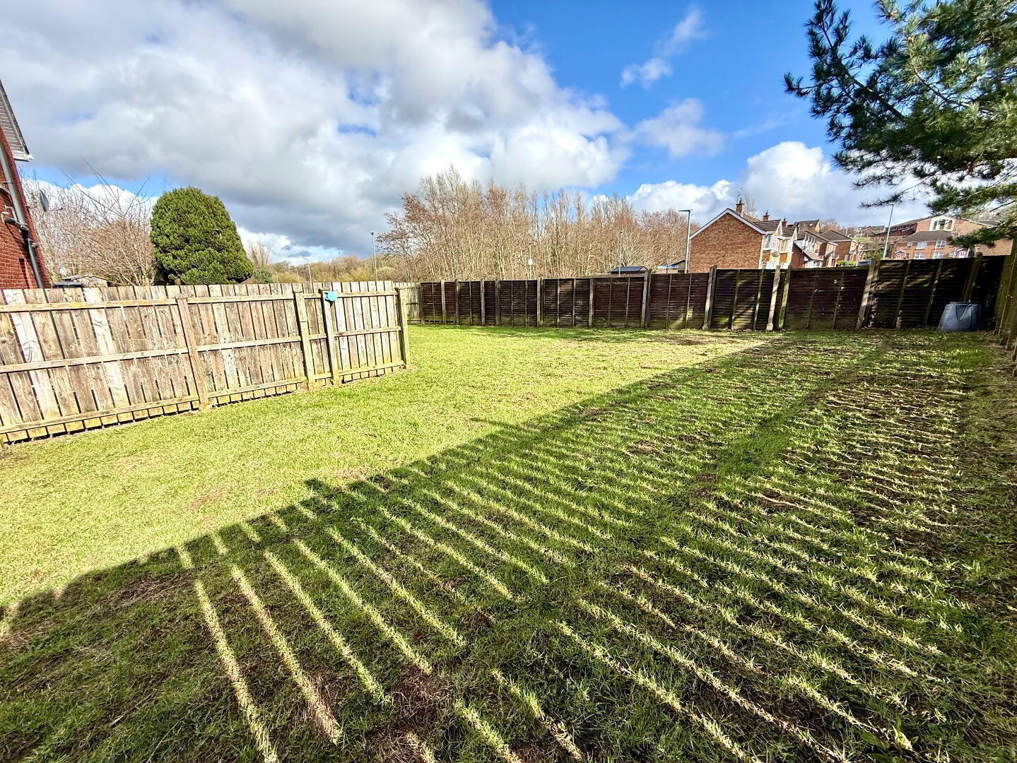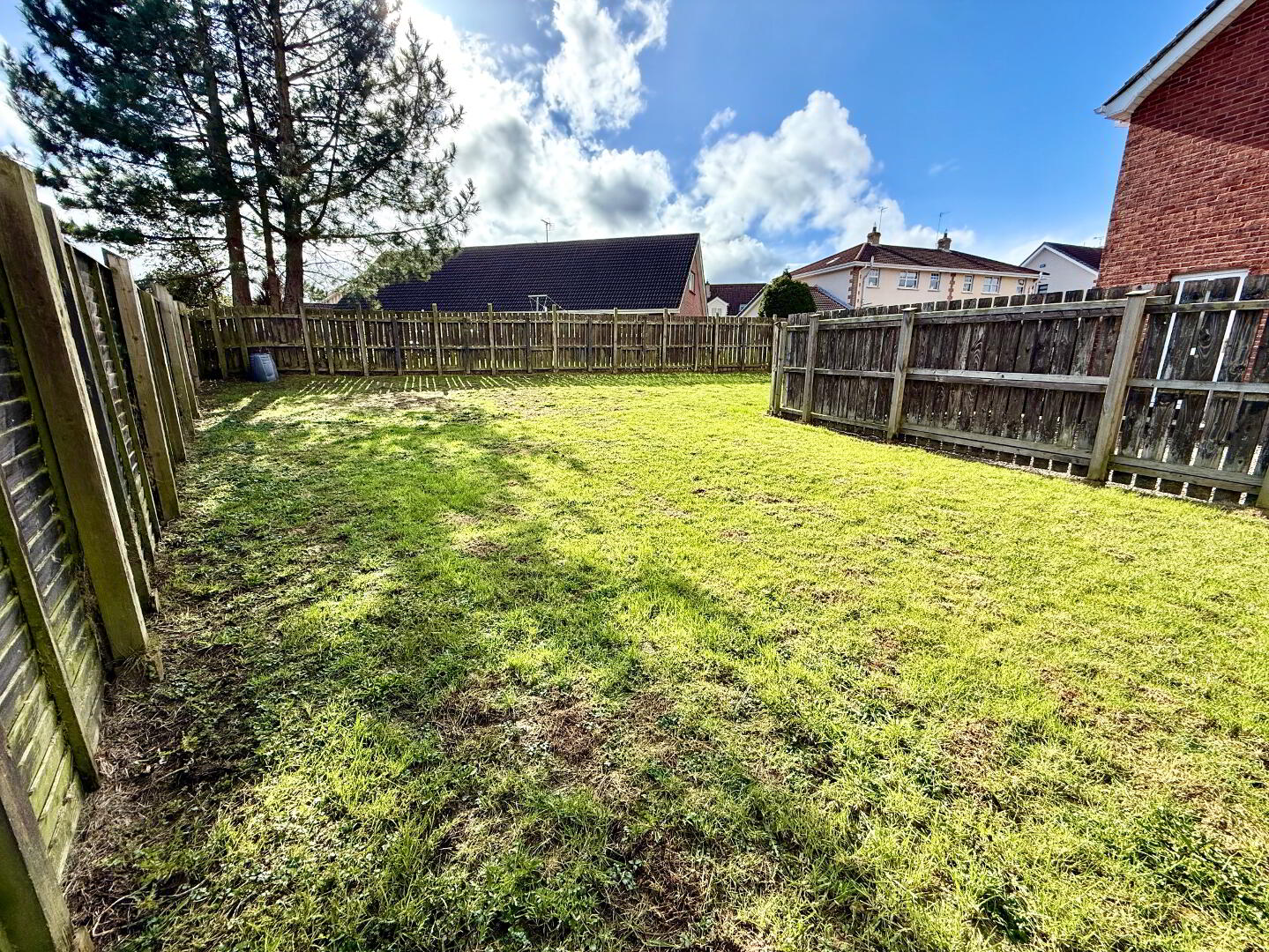 Large garden to side and rear laid in lawn enclosed by fence.