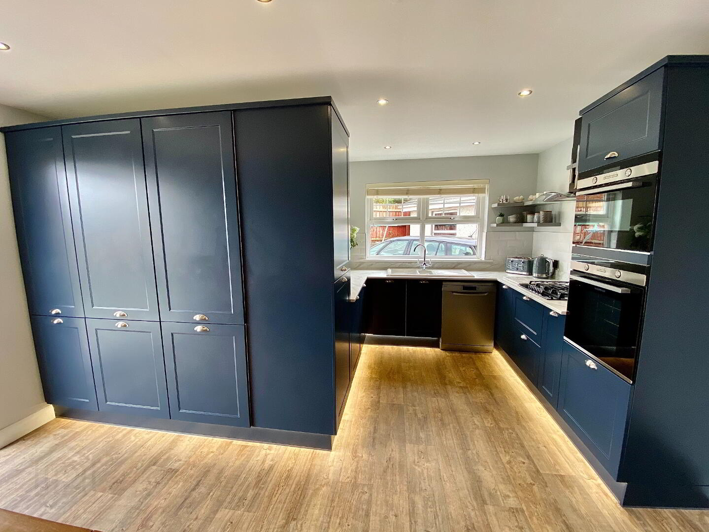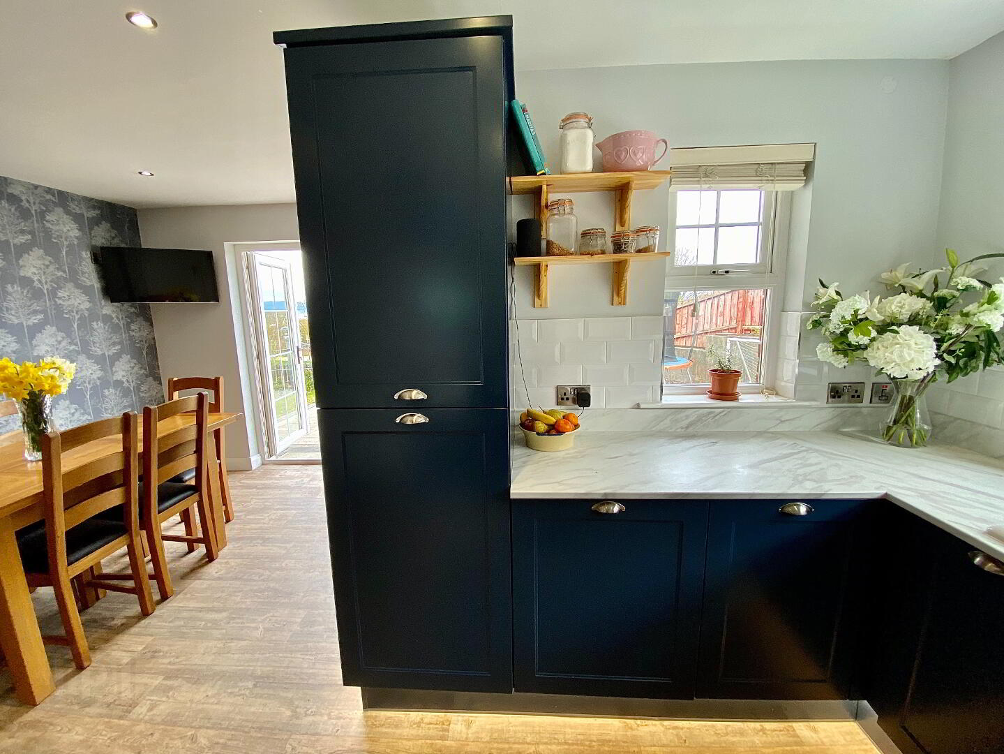 Utility Room Low level units, broom cupboard, single drainer stainless steel sink unit with mixer tap