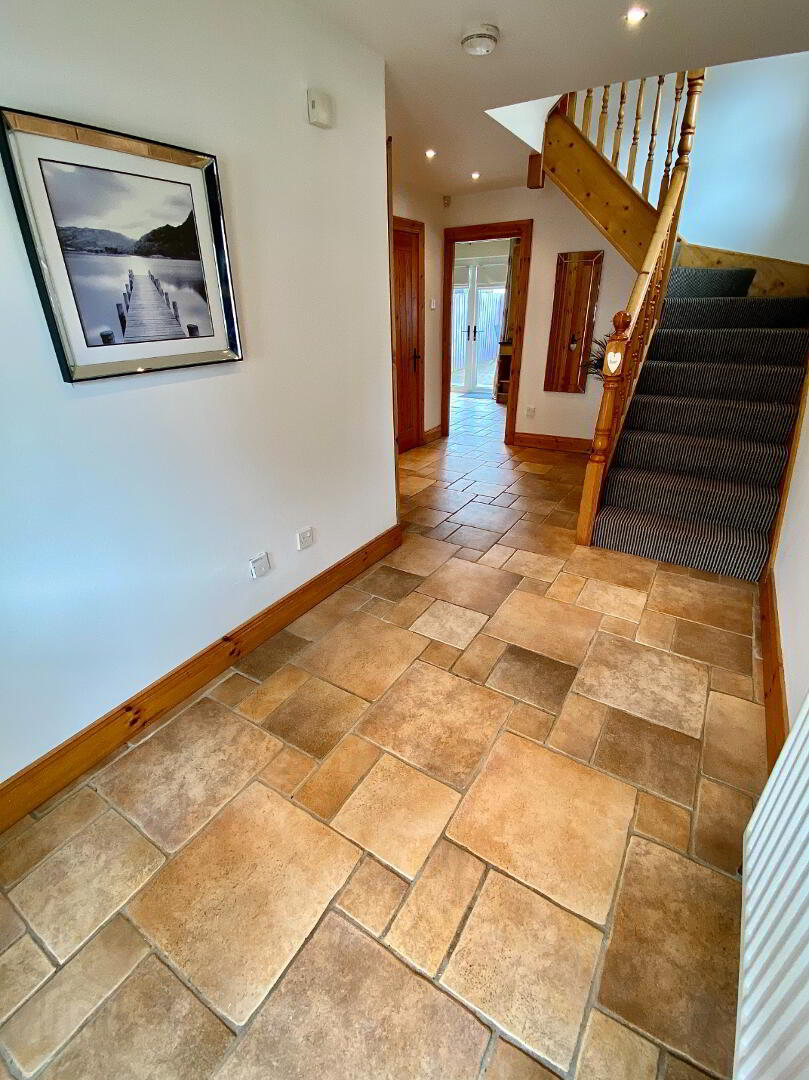 Entrance Hall with tiled floor, storage cupboard, door to garage