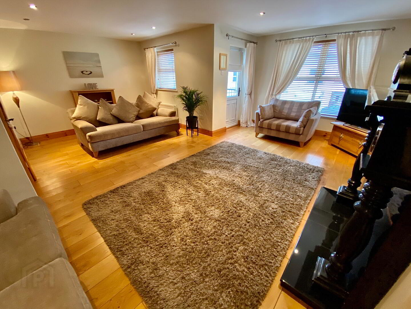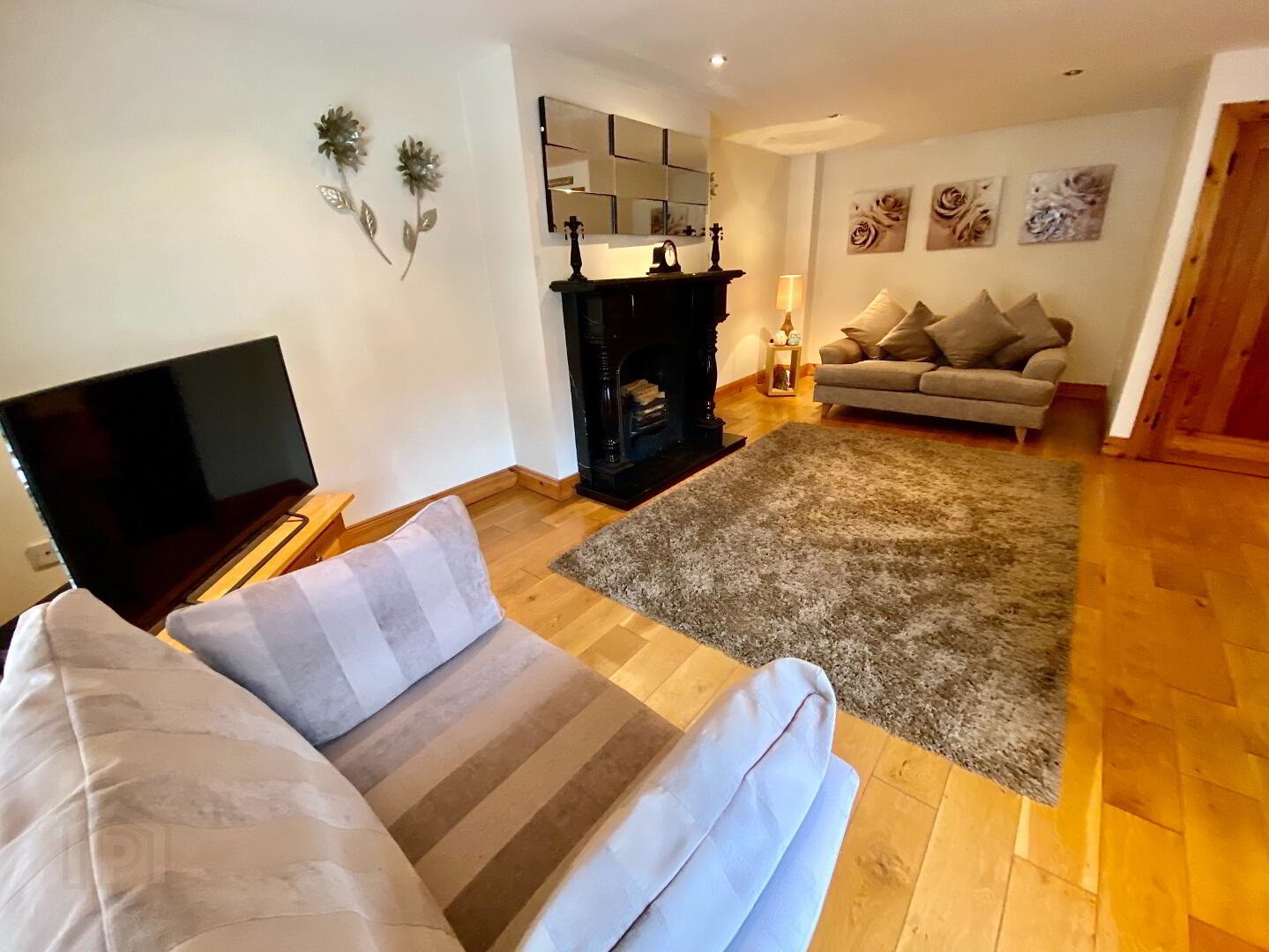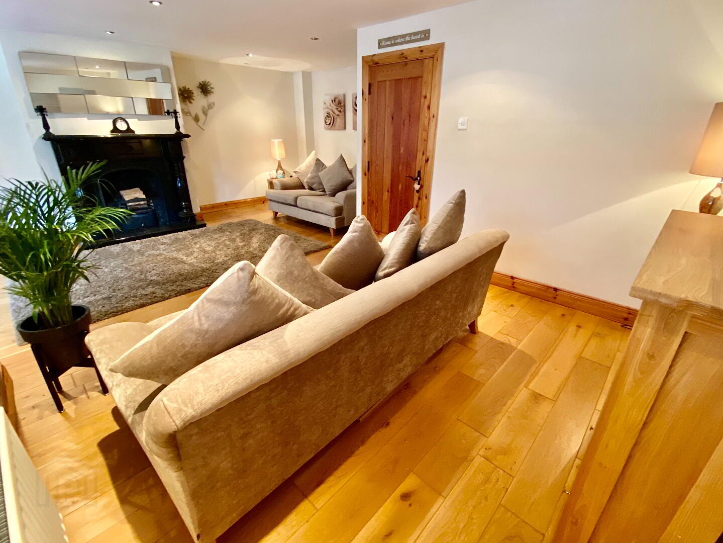 Lounge 22'3 x 20'10 (to widest points) Cast iron fireplace with black marble surround and granite hearth, wooden floor, recessed lighting, door to balcony