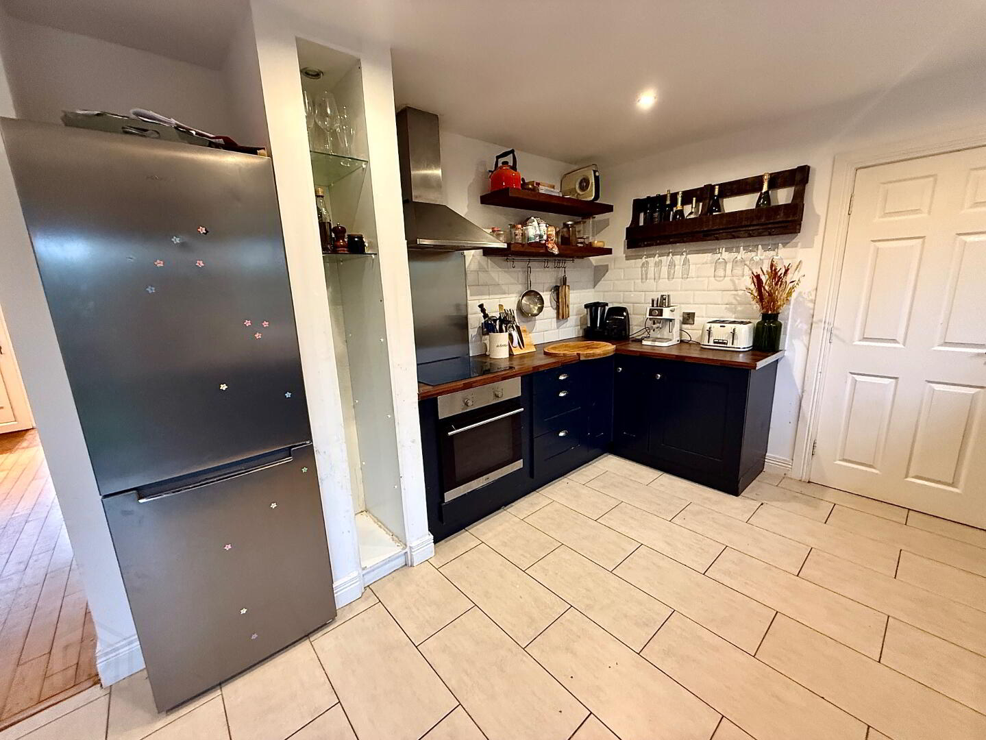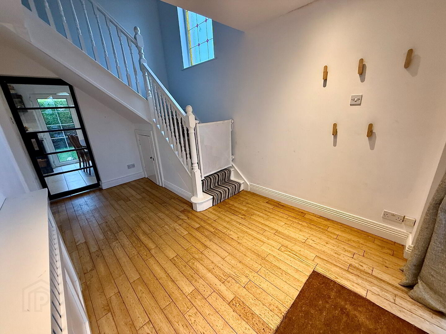 Entrance Hall with wooden floor, understair storage, recessed lighting.