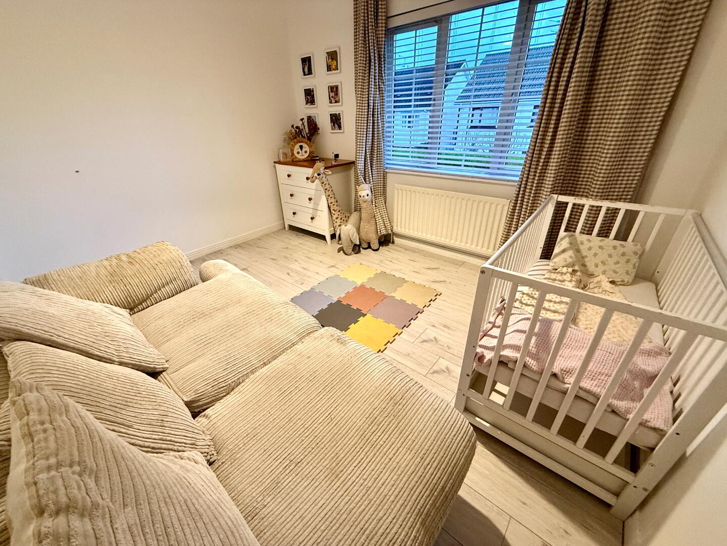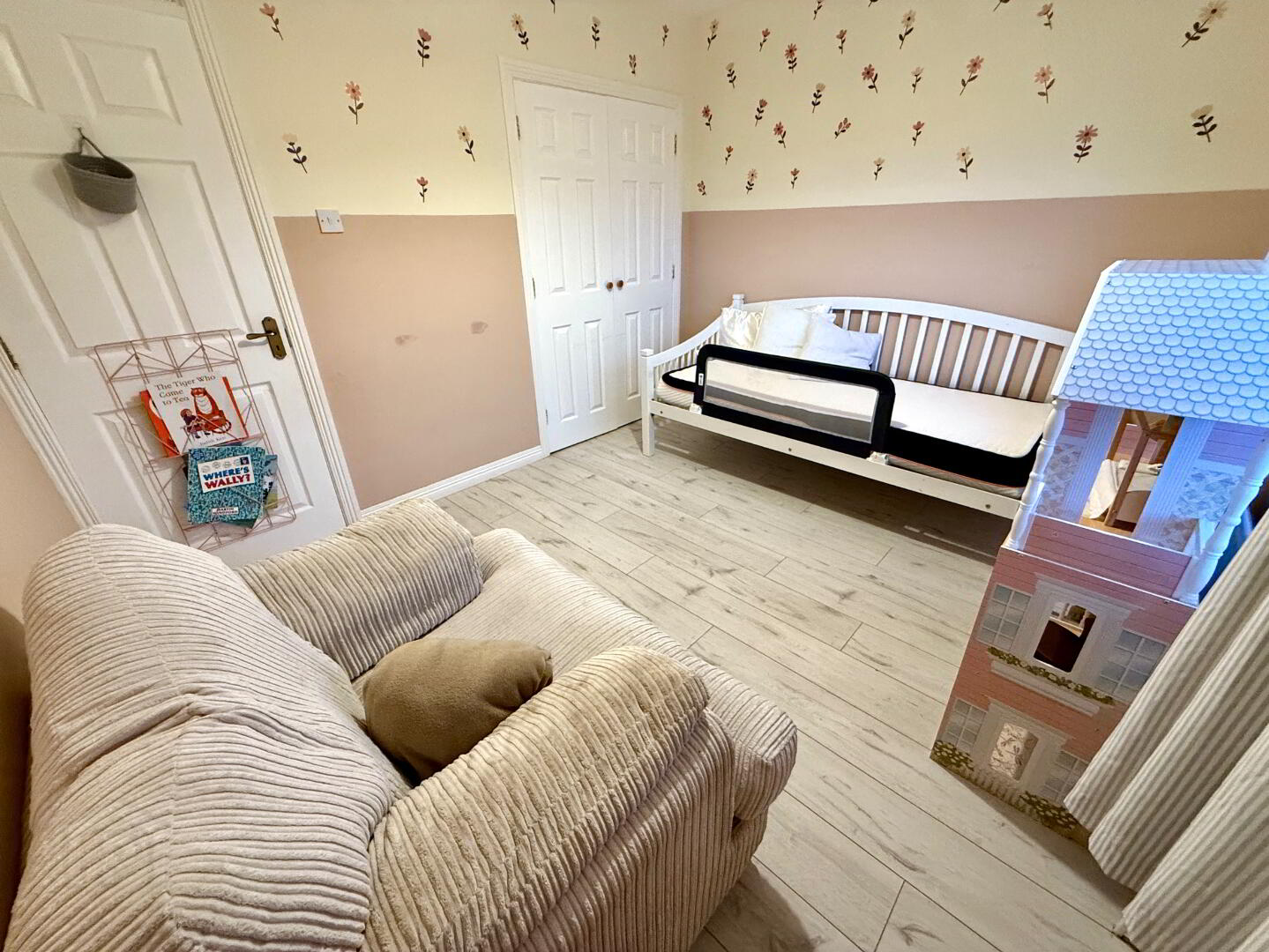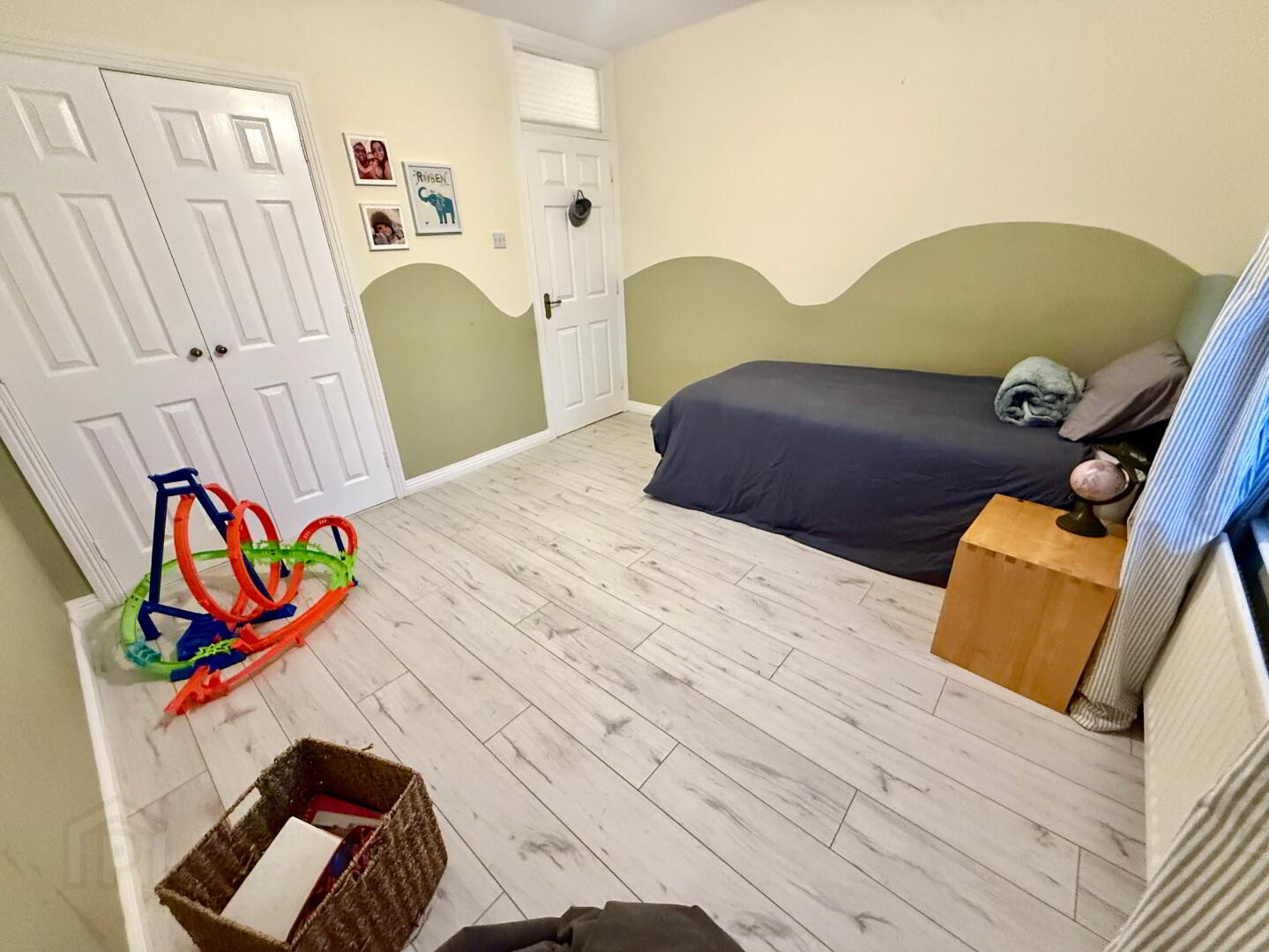 Bedroom 3 11'5 x 9'7 Double built in wardrobe, laminated wooden floor.