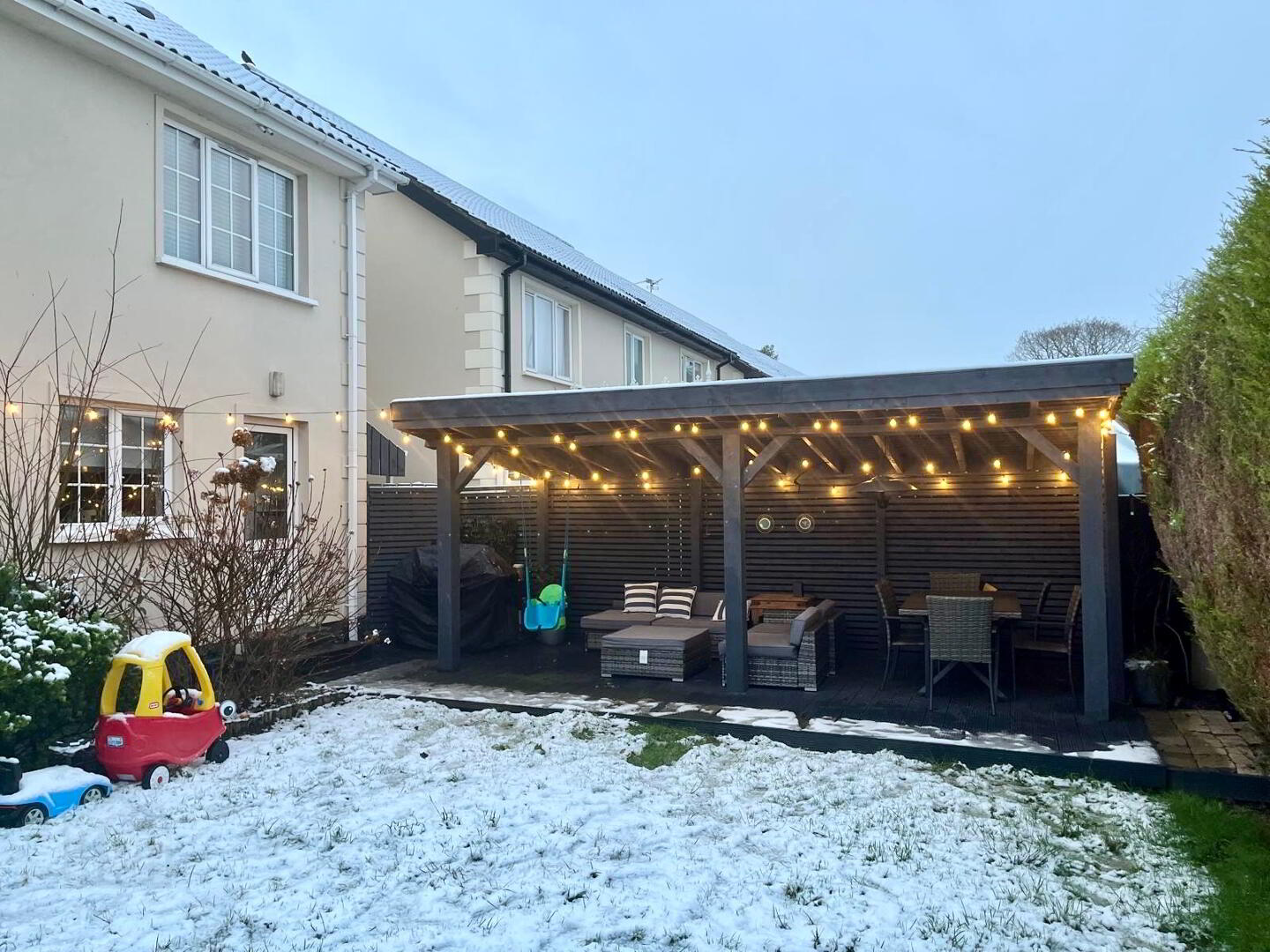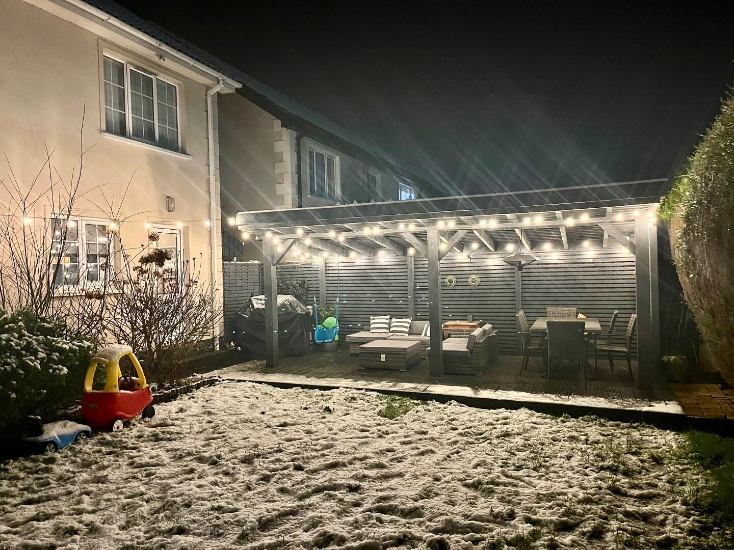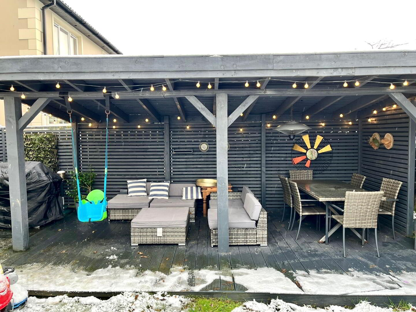 Open garden room with electric sockets.