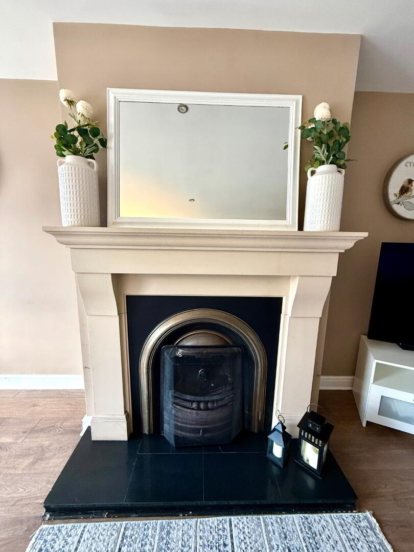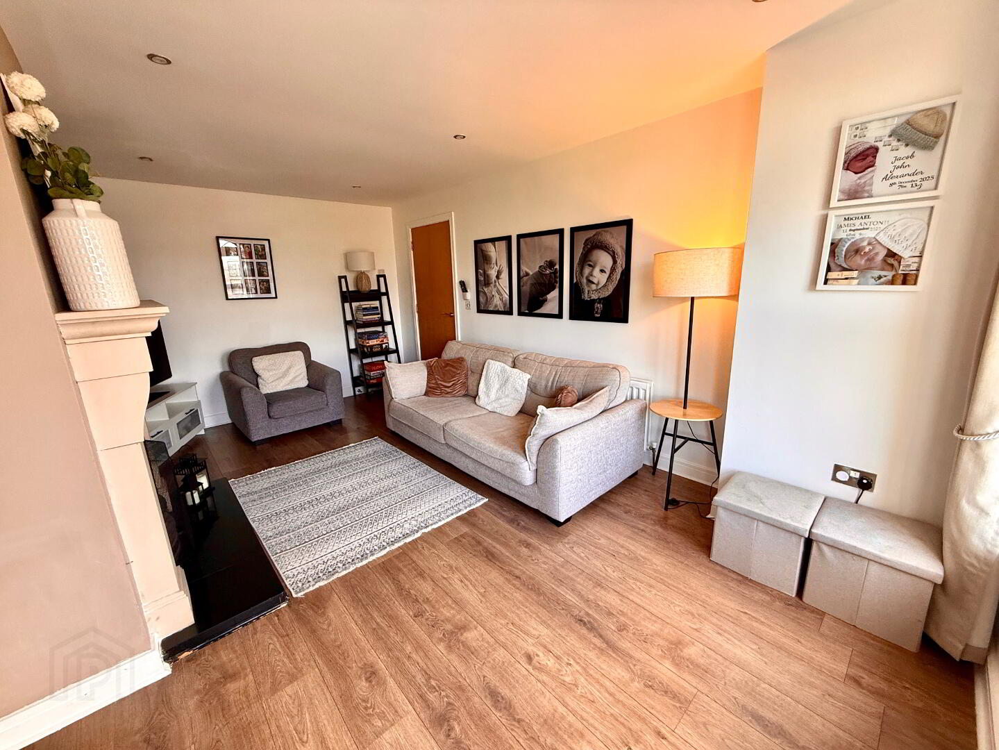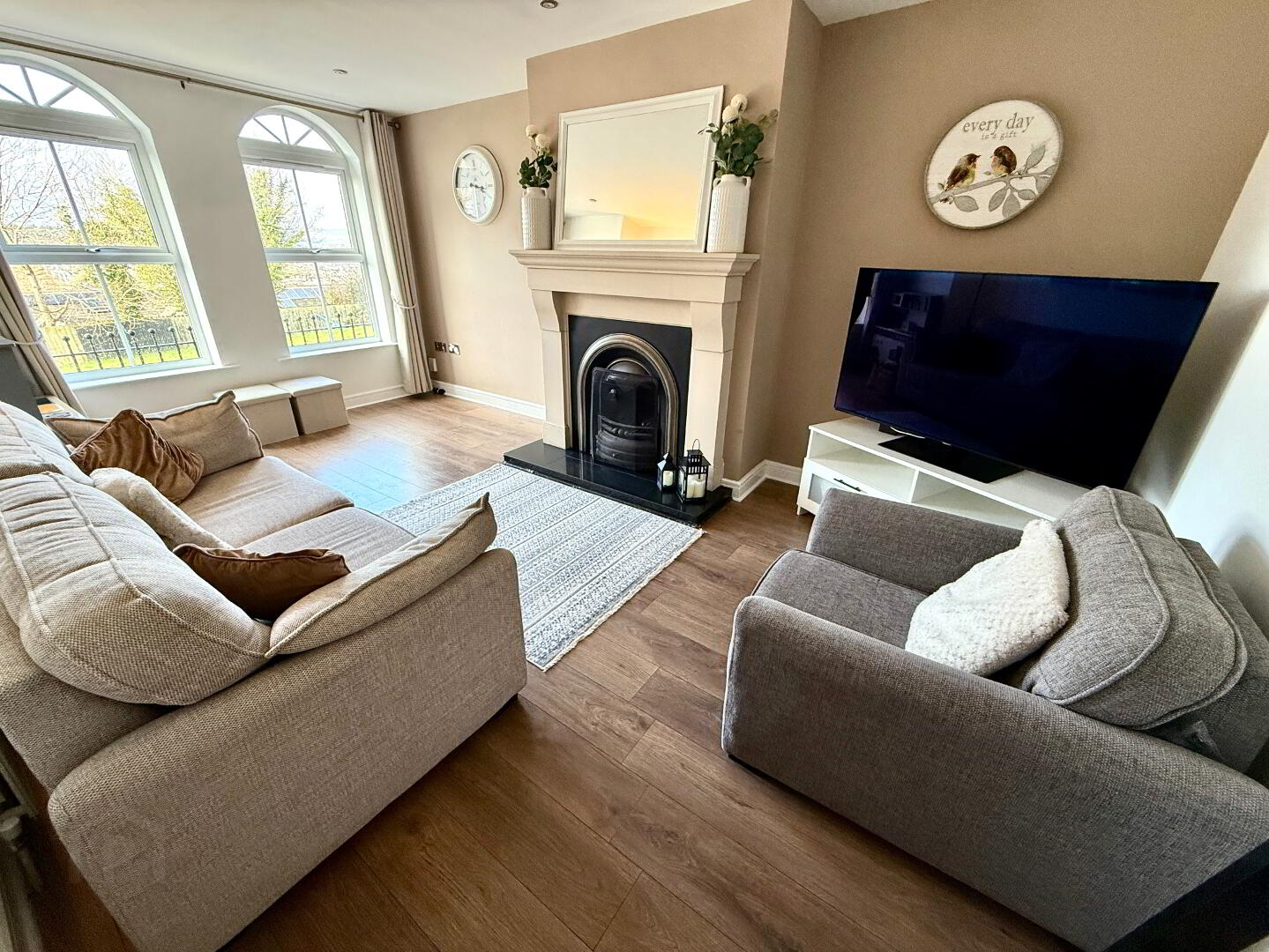 Lounge 17'5 x 11' (to widest points) Cast iron fireplace with sandstone surround, laminated wooden floor, recessed lighting.