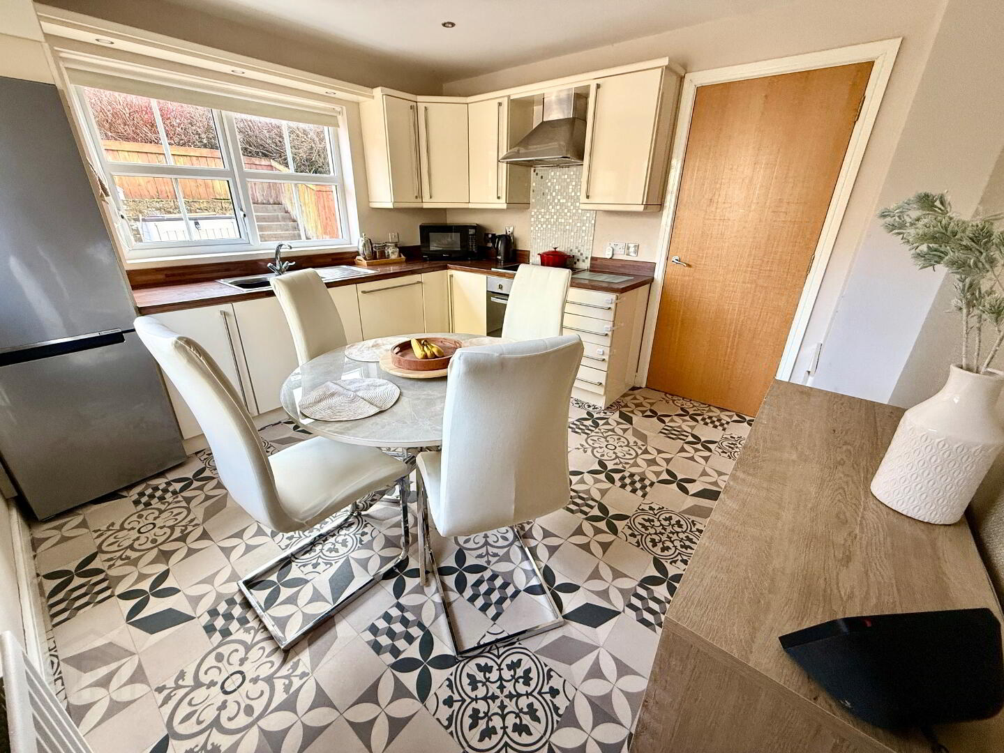 Kitchen/Dining 11'7 x 11' (to widest points). Eye and low level units, 1 1/2 bowl stainless steel sink unit with mixer tap, hob, oven and extractor fan, integrated dishwasher, recessed lighting.