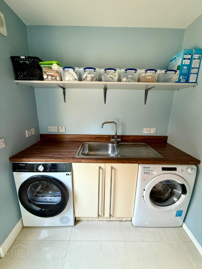 Utility Room 6'5 x 6'5 Low level units, single drainer stainless steel sink unit with mixer tap, plumbed for washing machine, space for tumble dryer, tiled floor.