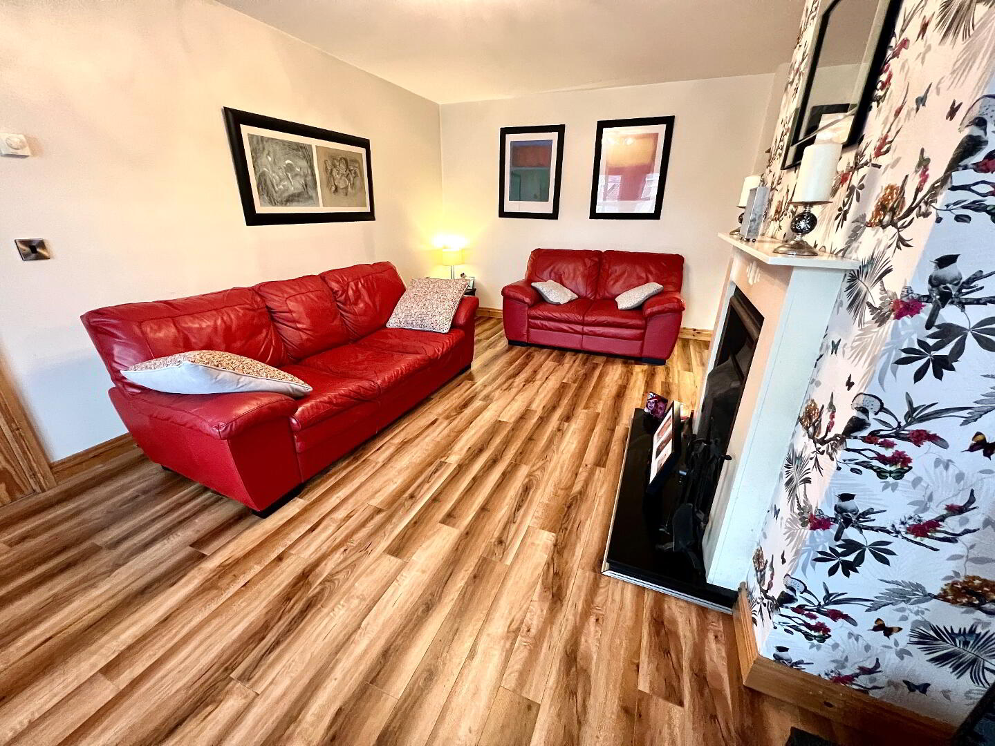 Lounge 19'5 x 11'8 (to widest points) Cast iron fireplace with wooden surround and granite hearth, laminated wooden floor.