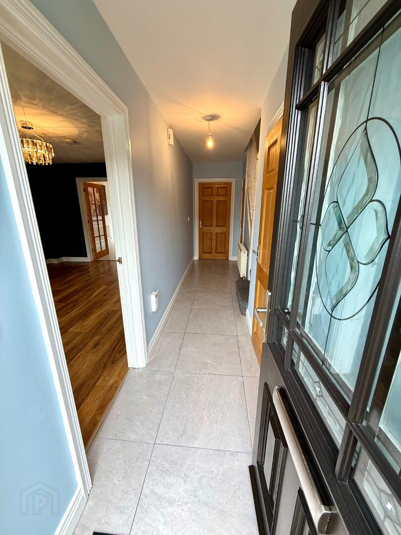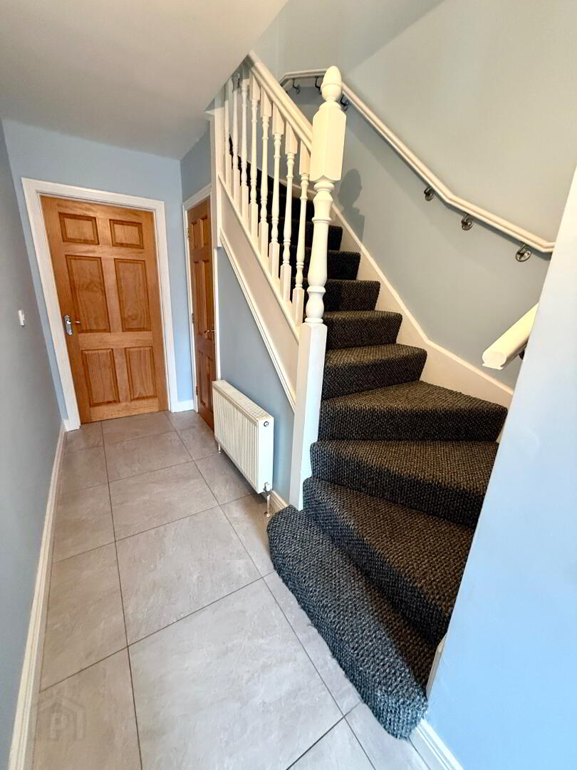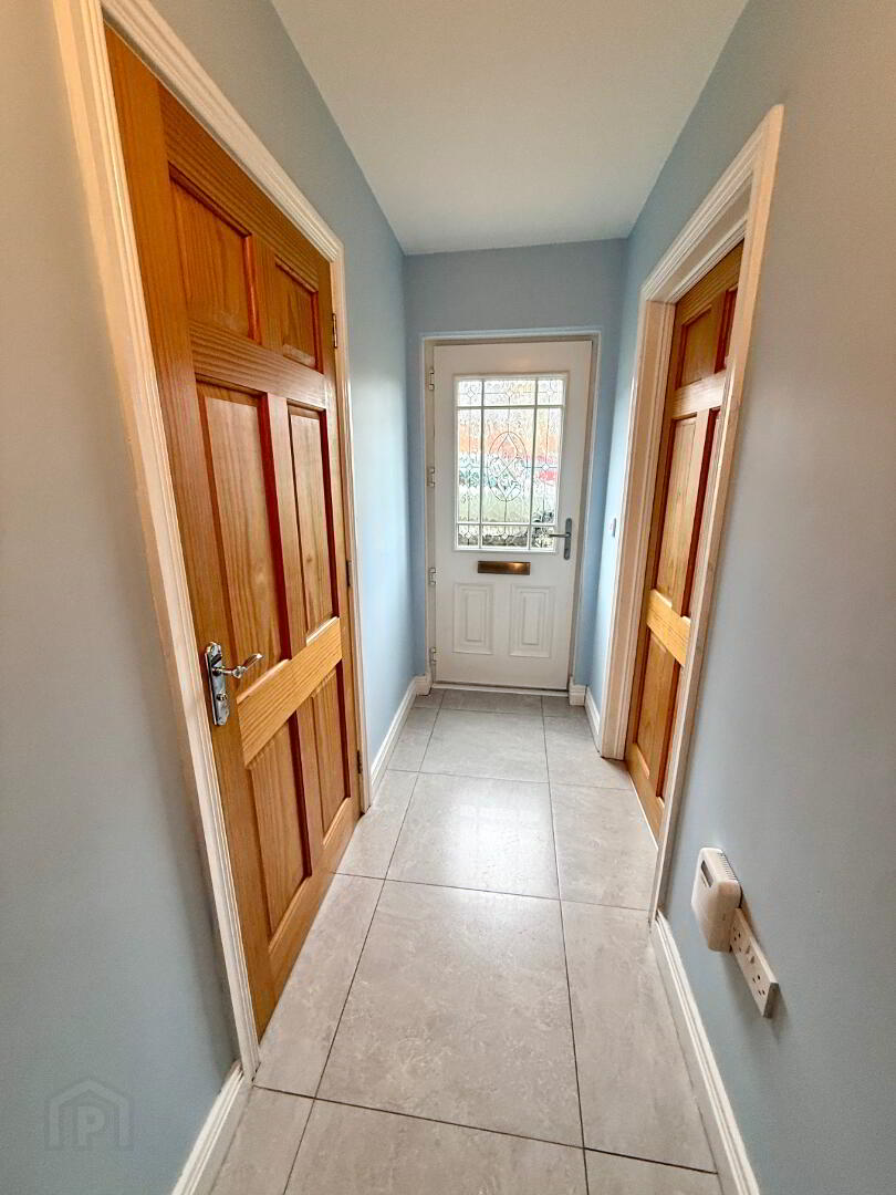 Entrance Hall with storage cupboard, tiled floor.