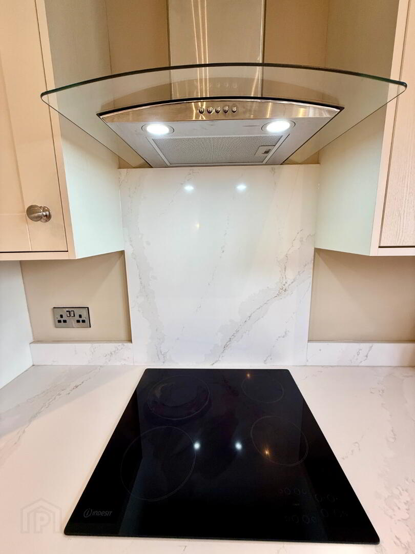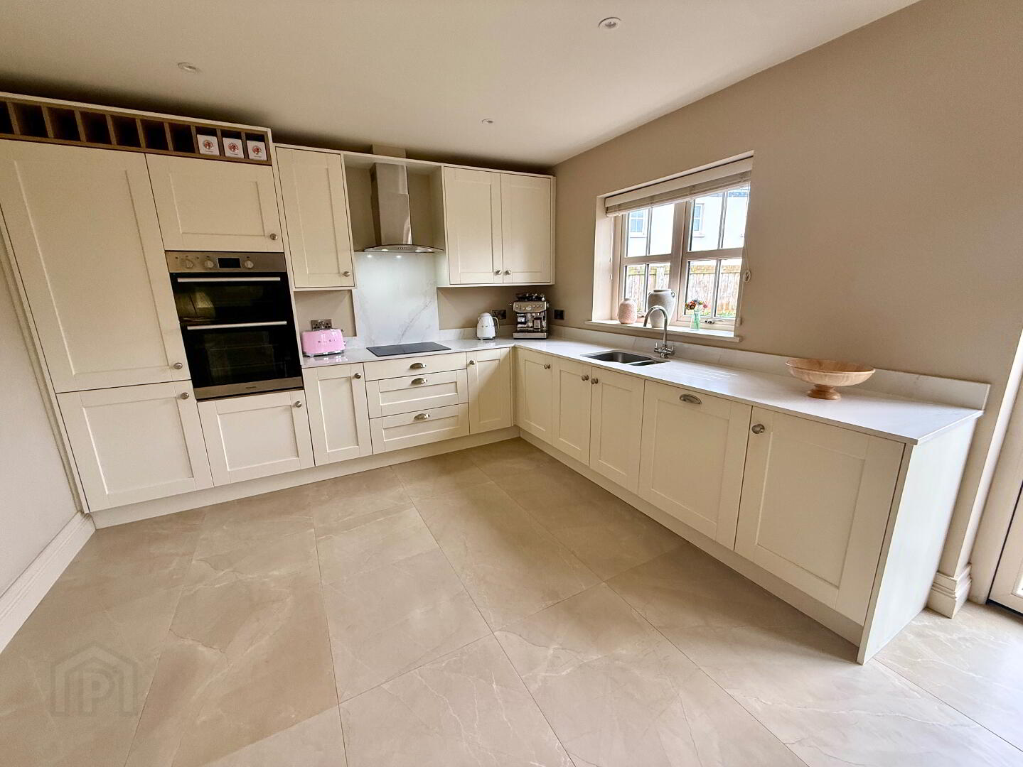 Kitchen/Dining 22'5 x 11'6 Eye and low level units, 1 1/2 bowl stainless steel sink unit with tap, hob, double wall oven and extractor fan, natural stone work top with upstand, integrated dishwasher, integrated fridge/freezer, wine rack, tiled floor, double patio doors.
