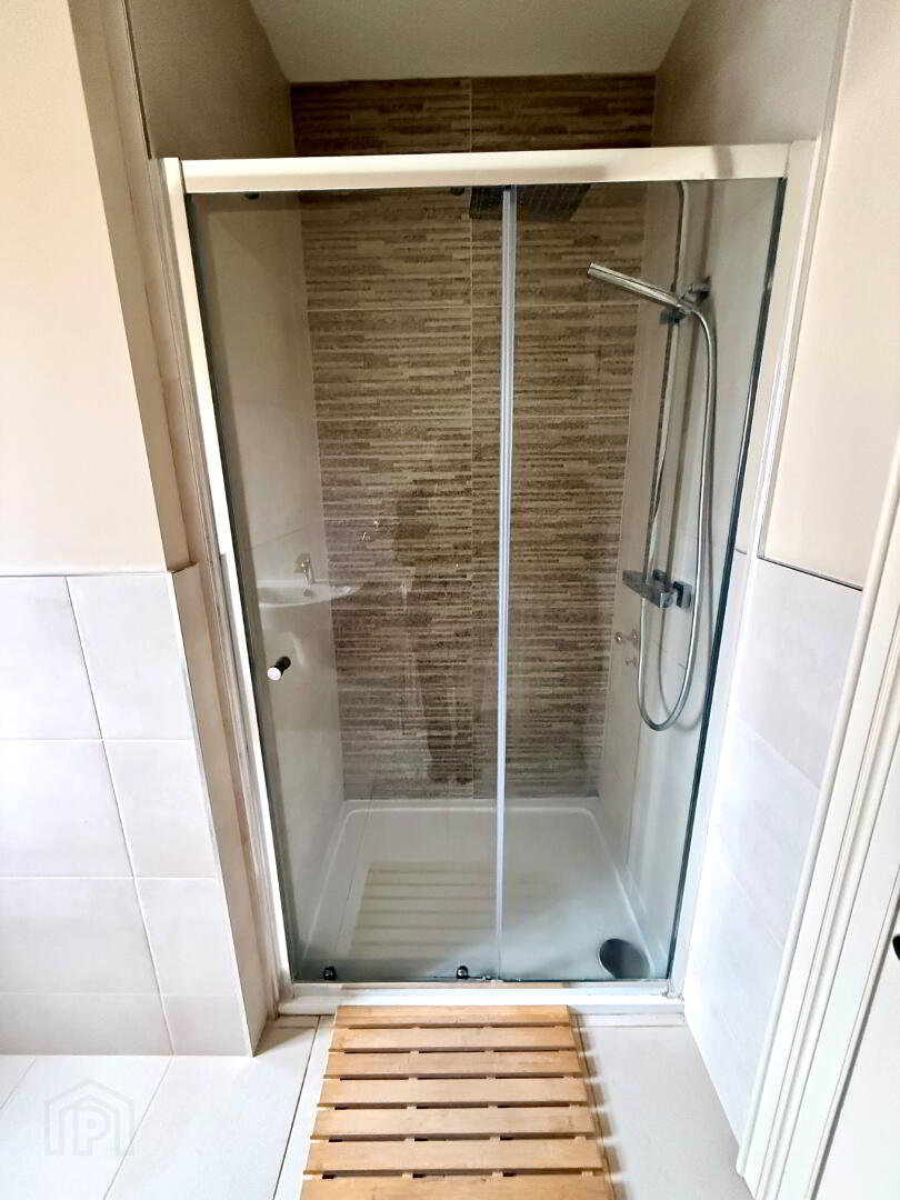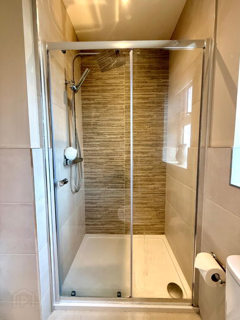 Ensuite Fully tiled walk in rain shower, wash hand basin and WC, partly tiled walls, tiled floor.