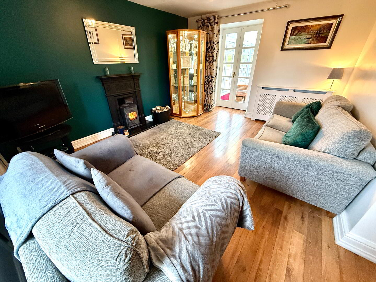 Family Room 15'11 x 13'2 (to widest points) Cast iron fireplace with multi fuel stove, laminated wooden floor, double doors to conservatory.