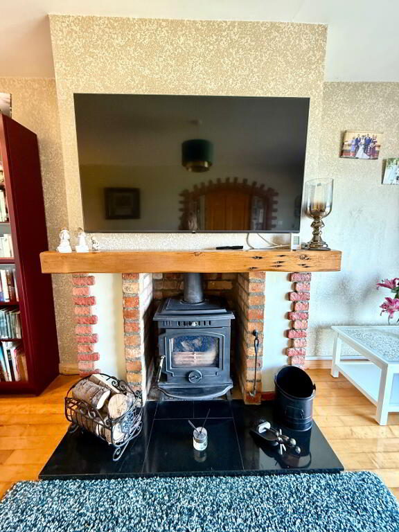 Lounge 16'7 x 11'3 (to widest points) Picture window, multi fuel stove, wooden floor, wall lights.