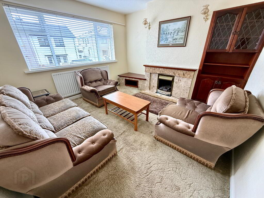 Lounge 12'1 x 11'10 (to widest points) Marble fireplace and hearth, side shelf, wall lights.
