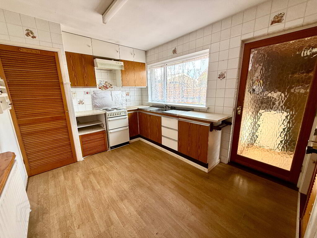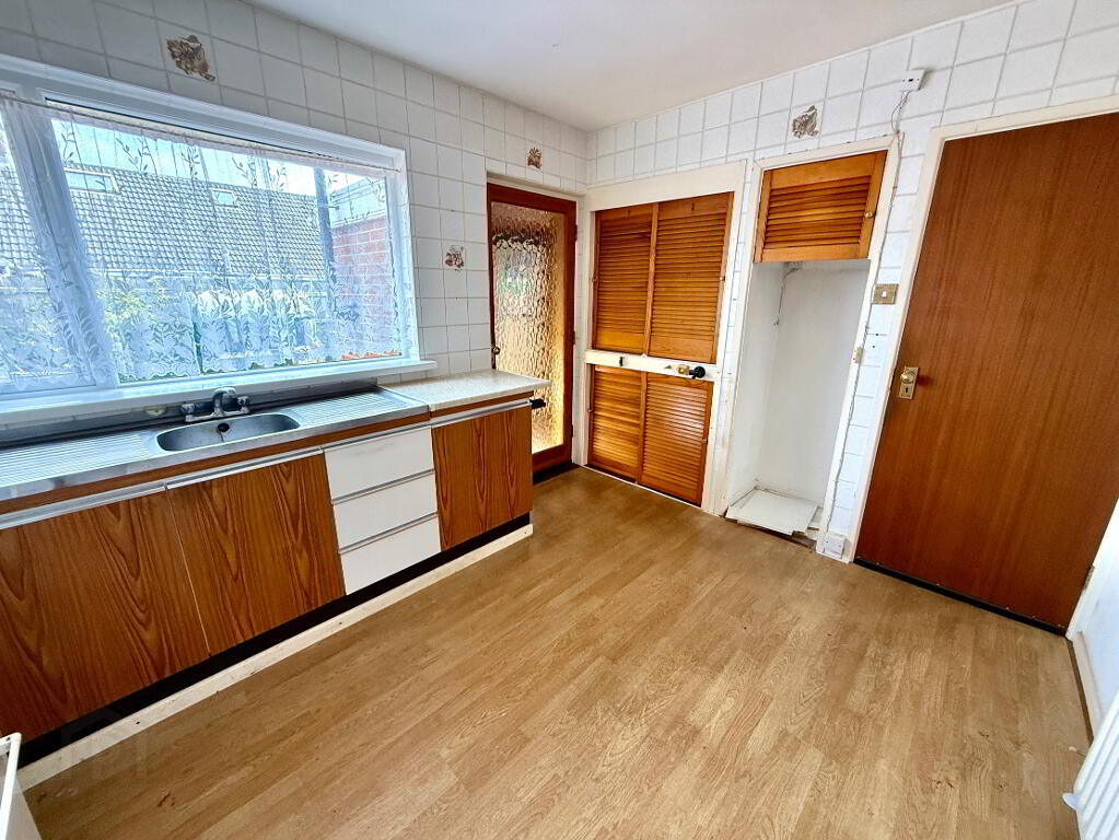 Kitchen 11'6 x 8'11 (to widest points) Eye and low level units, double drainer stainless steel sink unit with mixer tap, laminated wooden floor