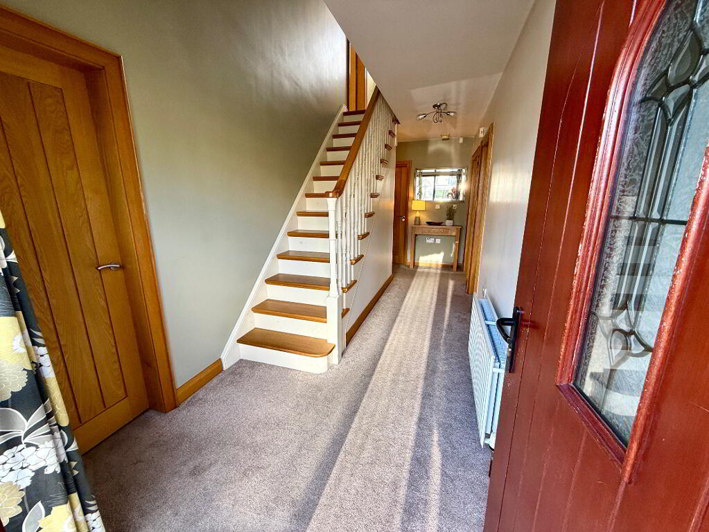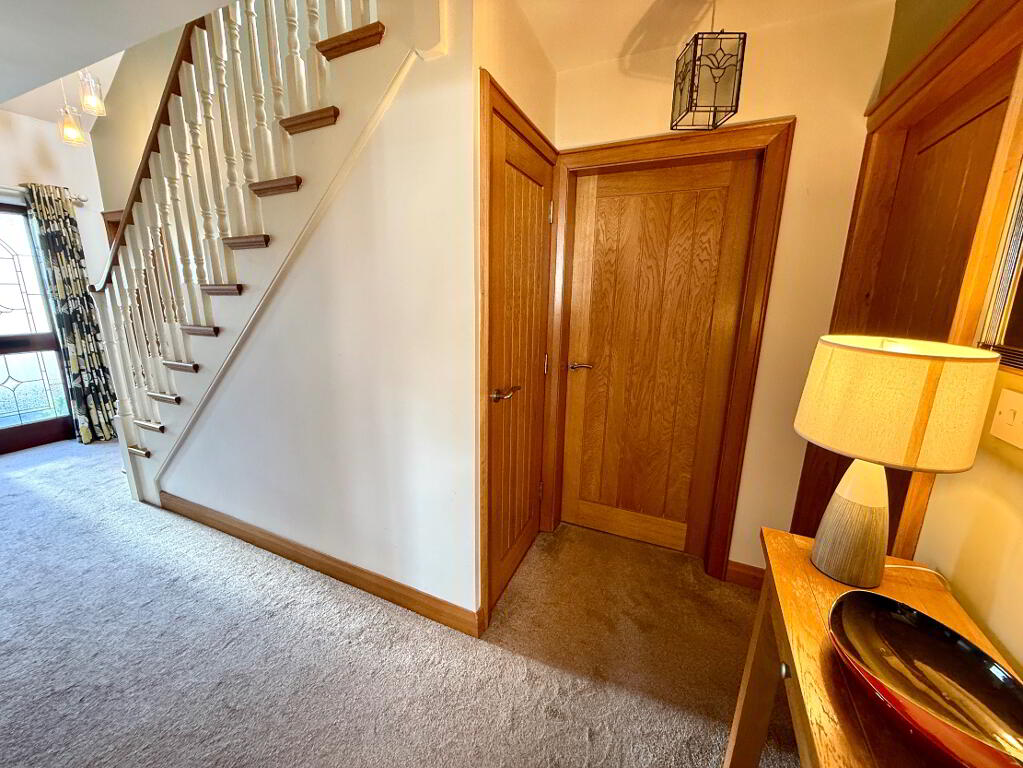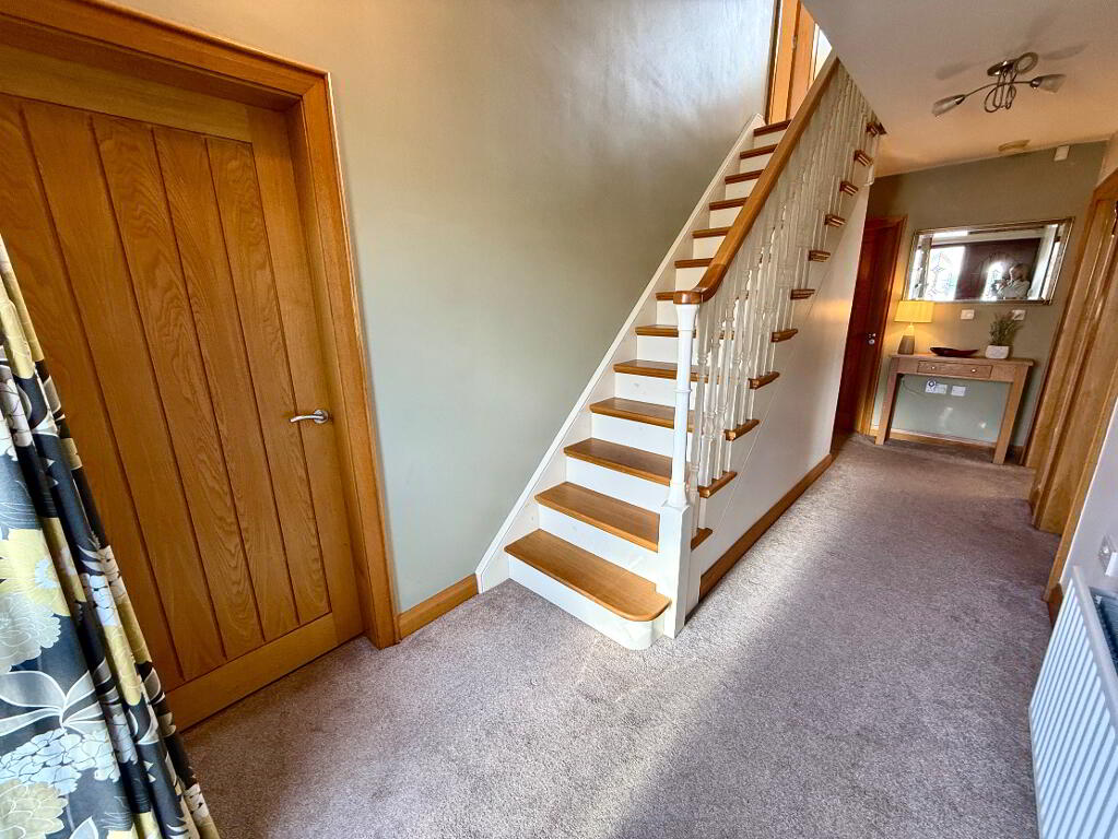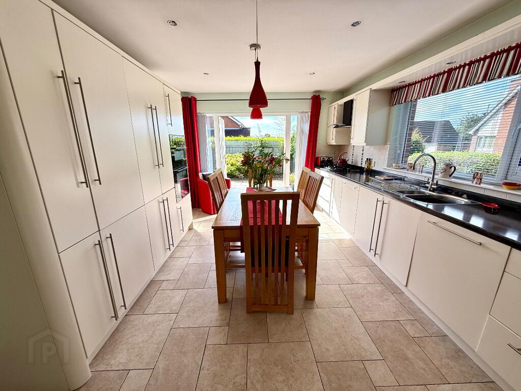 Kitchen/Dining 17'4 x 13'7 (to widest points) Dual aspect, eye and low level units, glazed display unit, bank of tall units comprising of larder cupboard, integrated fridge/freezer and broom cupboard, double wall oven, 1 1/2 bowl stainless steel sink unit with mixer tap, hob and extractor fan, integrated dishwasher, partly tiled walls, tiled floor, recessed lighting, underfloor heating.