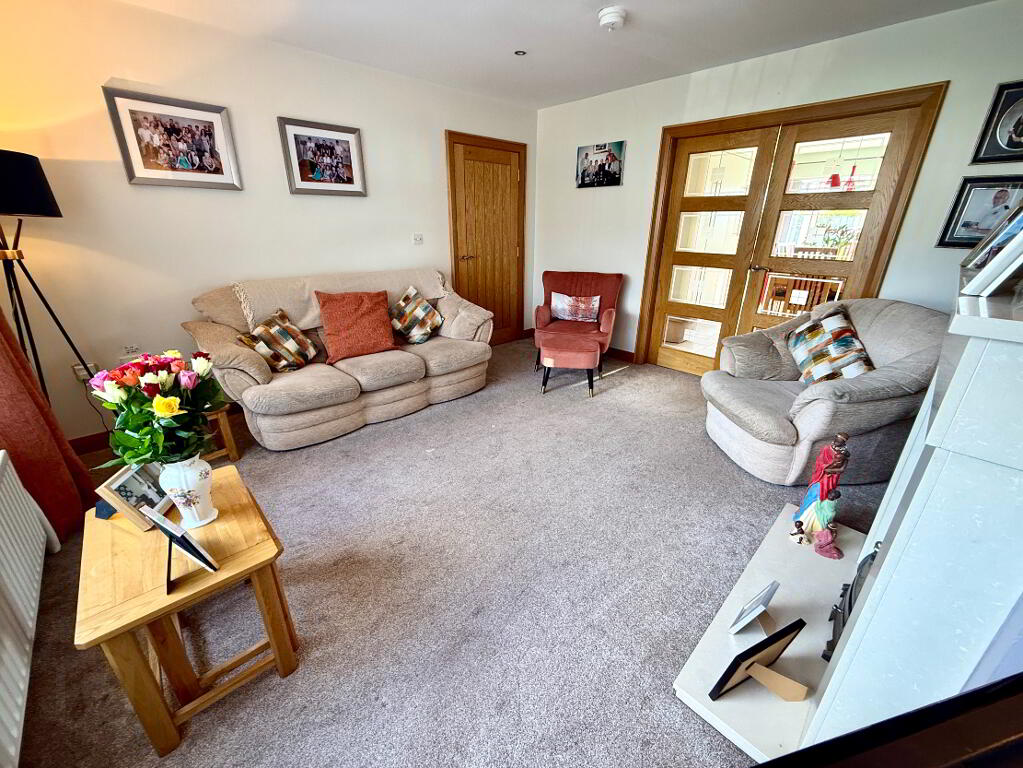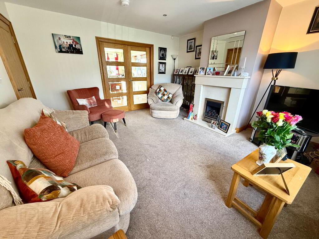 Lounge 13'10 x 13'7 (to widest points) Marble fireplace and hearth with gas fire, double doors to kitchen.