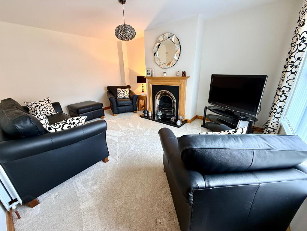 Lounge 15'7 x 12'3 (to widest points) Cast iron fireplace with wooden surround and granite hearth.