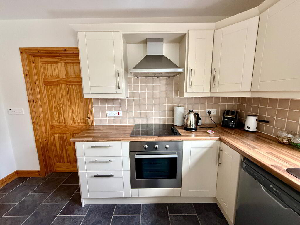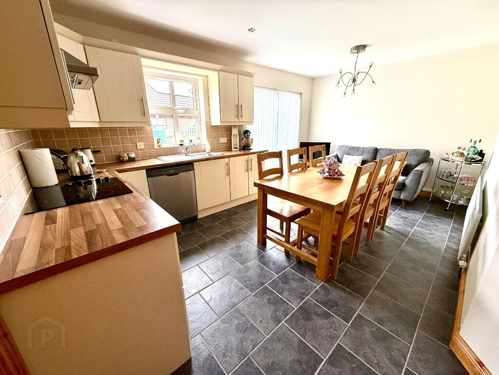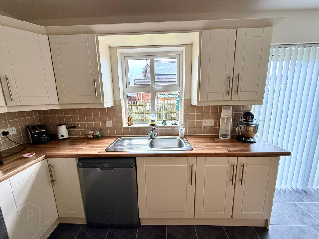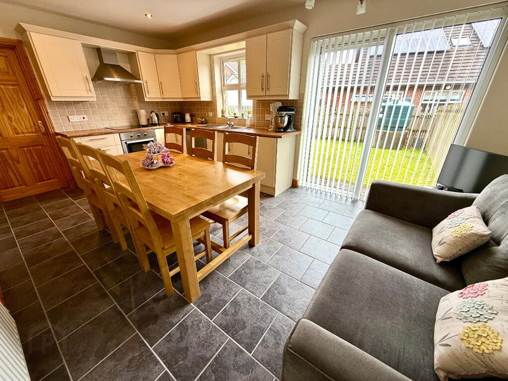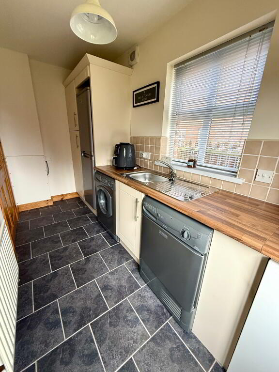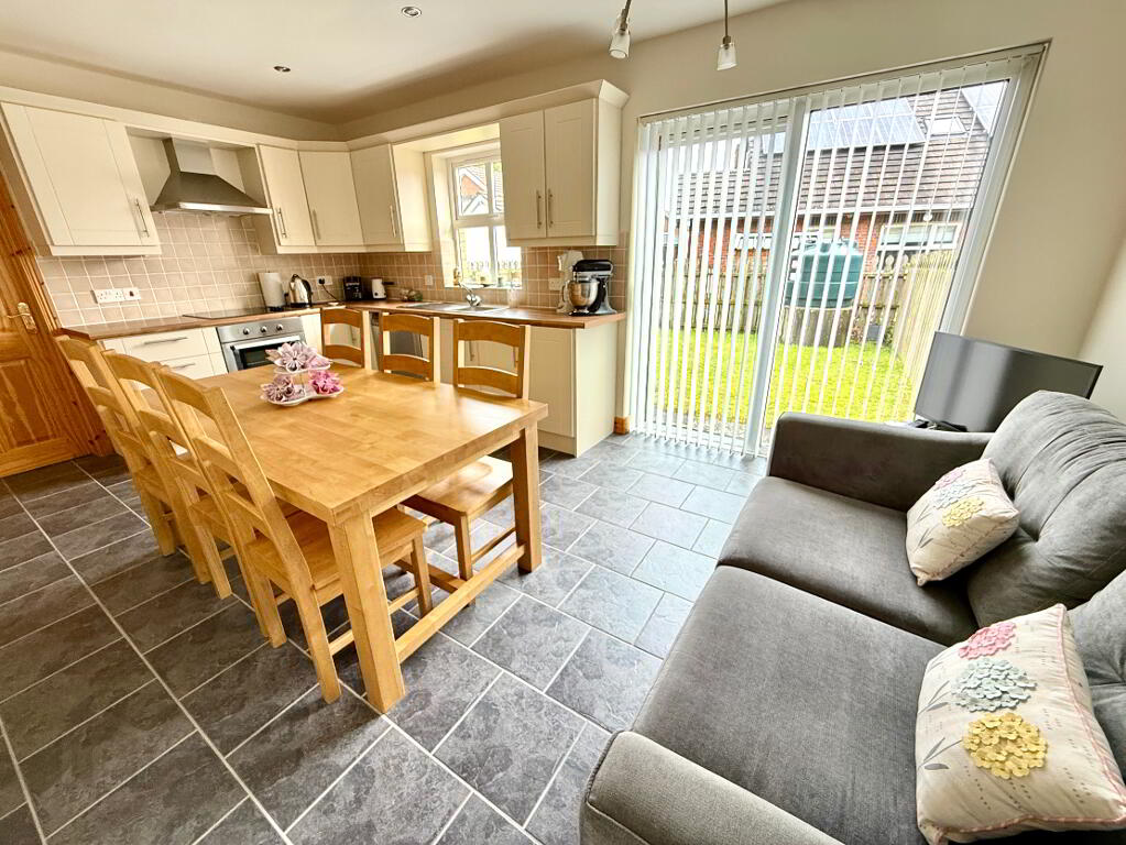 Kitchen/Dining 17'1 x 10'9 (to widest points) Eye and low level units, single drainer stainless steel sink unit with mixer tap, hob, oven and extractor fan, plumbed for dishwasher, partly tiled walls, tiled floor, patio door.