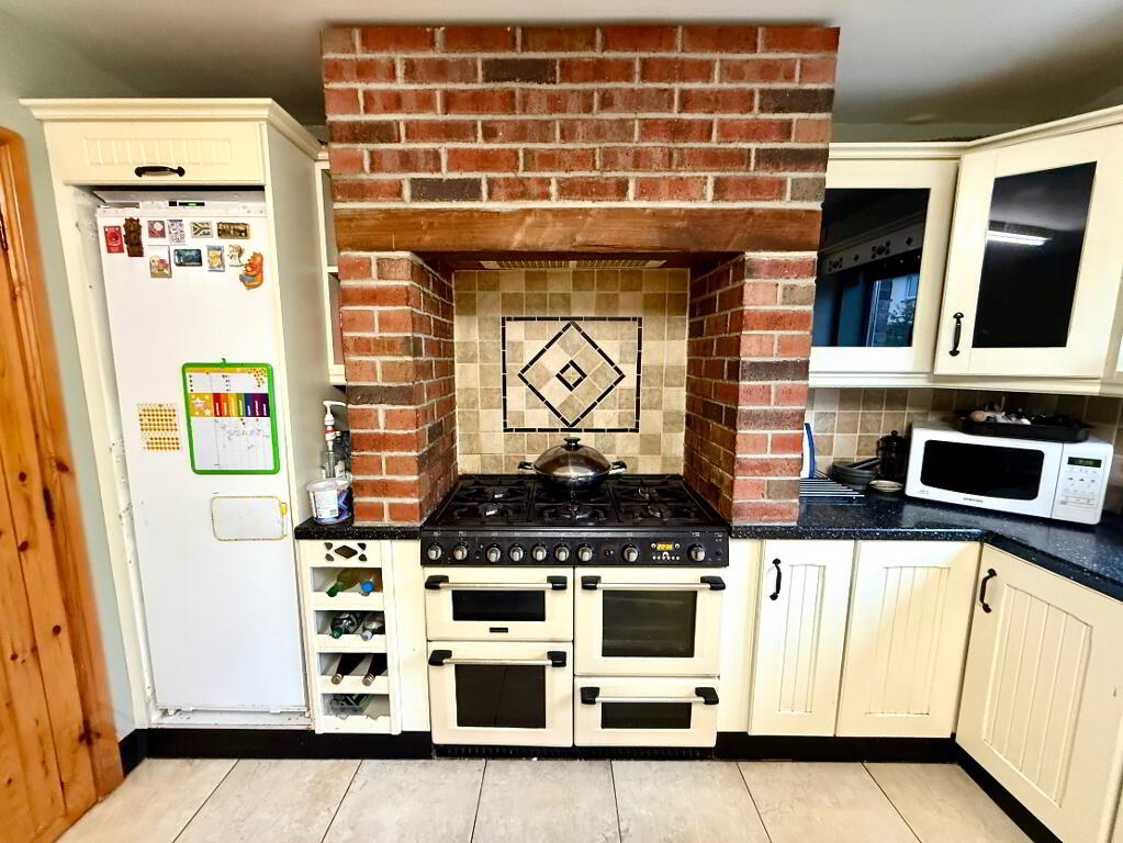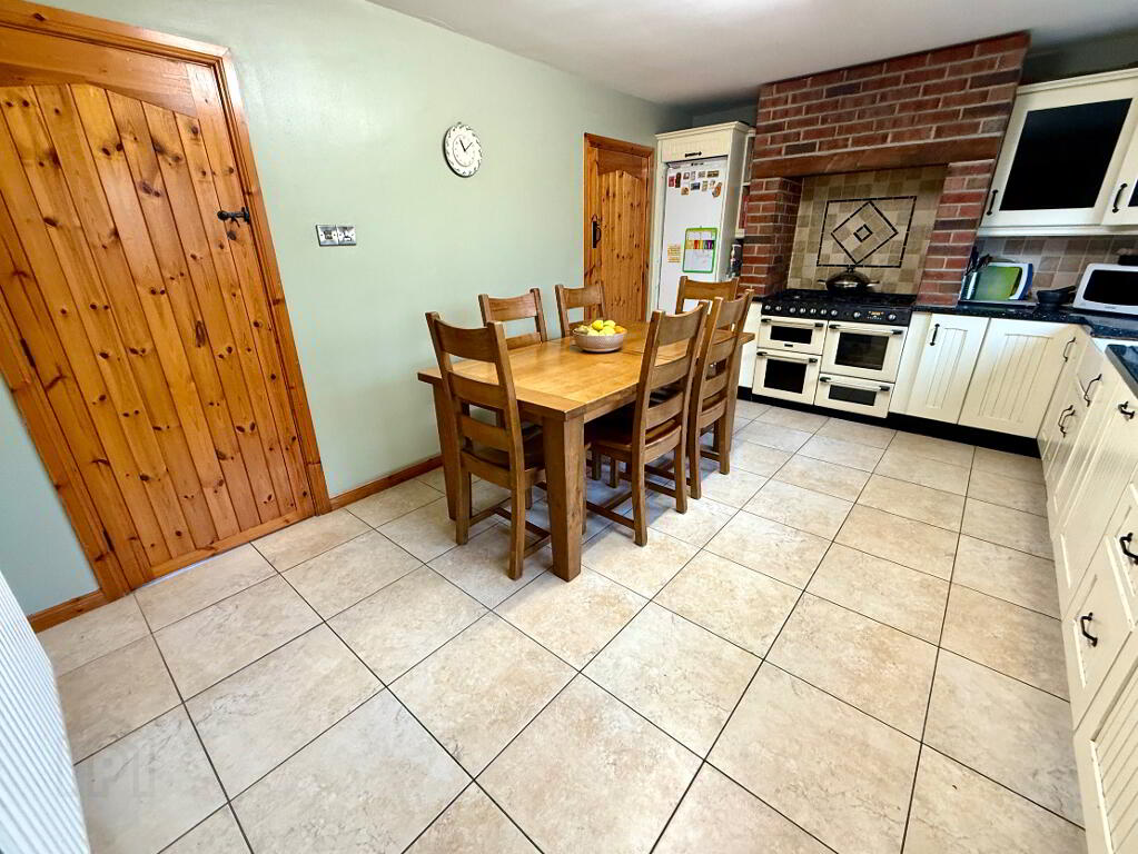 Kitchen/Dining 16'2 x 11'4 (to widest points) Eye and low level units, Belfast sink unit, Cannon Range cooker, integrated dishwasher, wine rack, partly tiled walls, tiled floor.