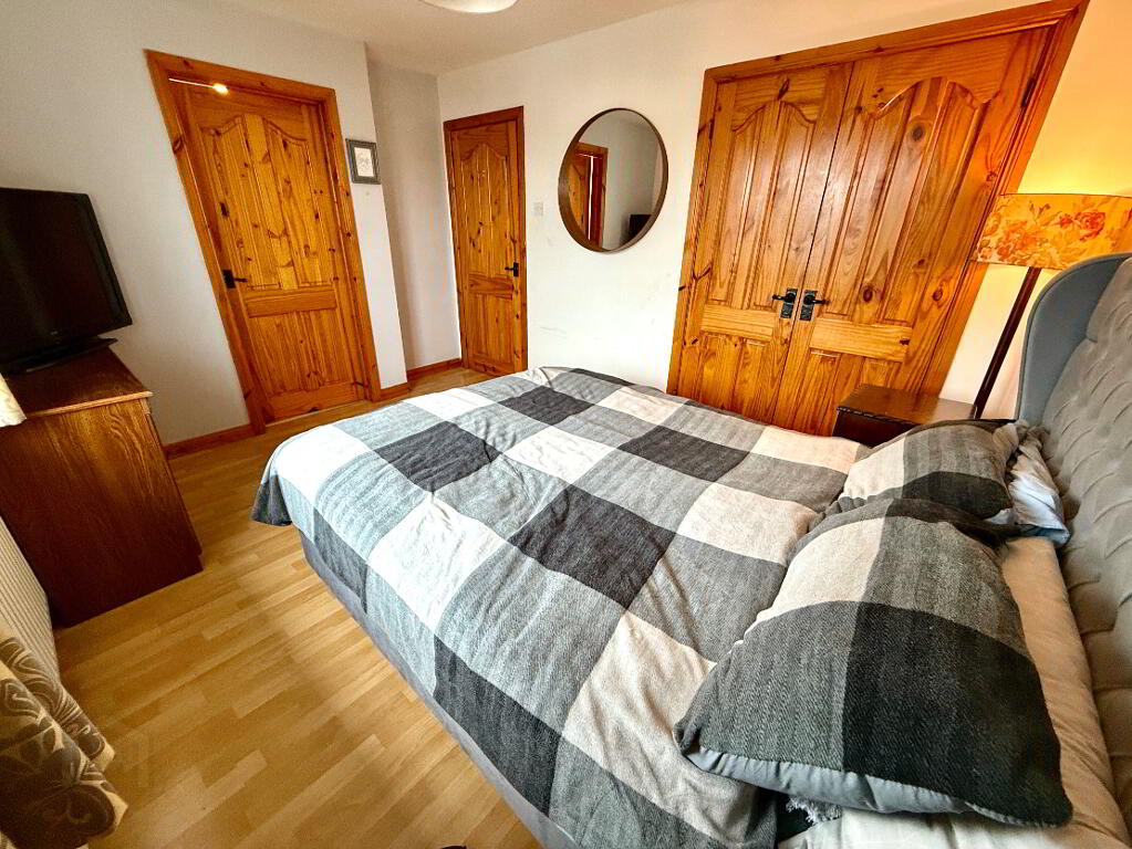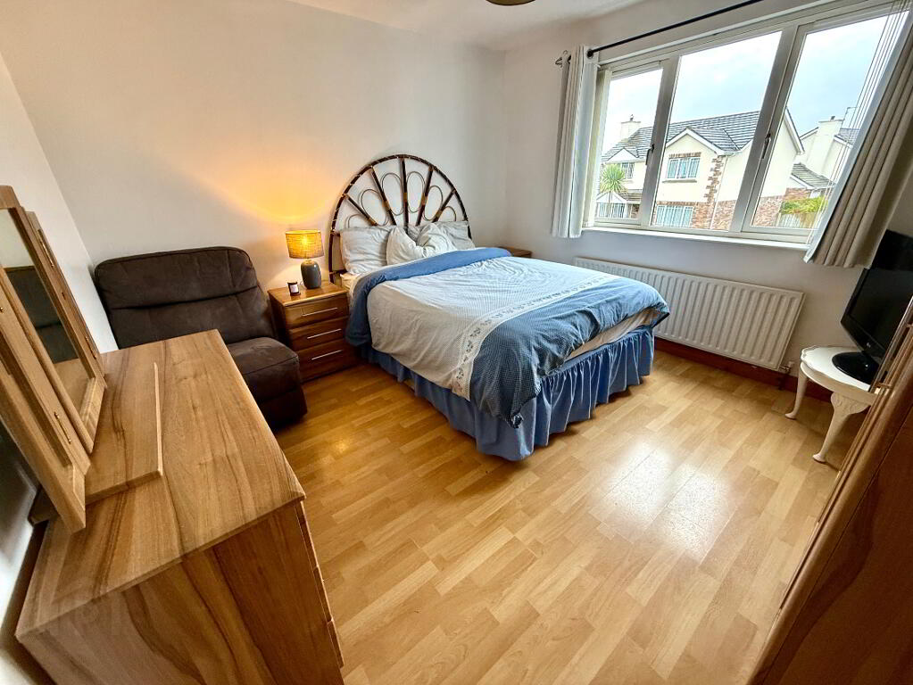 Bedroom 1 12'2 x 9'9 Double built in wardrobe, laminated wooden floor.