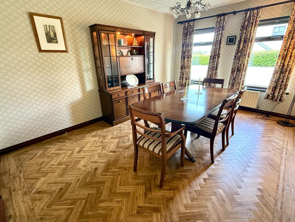 Dining Room 15' x 10'9 Amtico herringbone wooden effect floor.