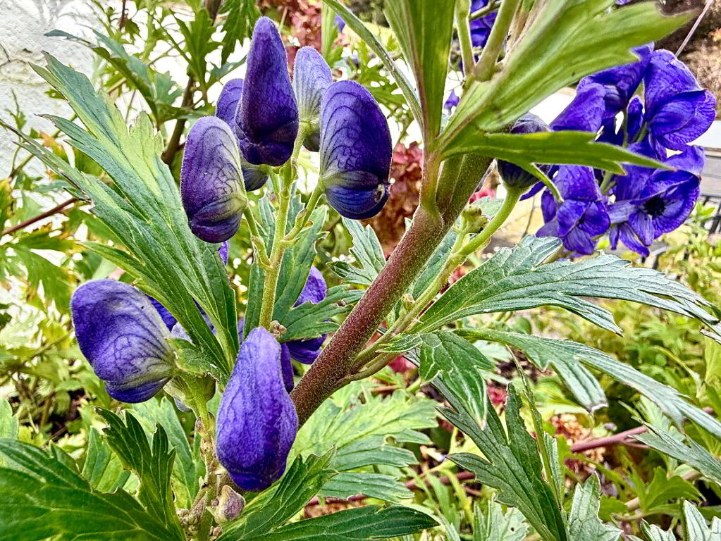 Garden to front laid in lawn enclosed by wall enhanced with mature plants and occasional trees.