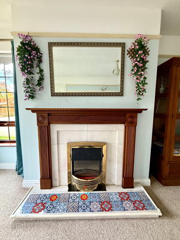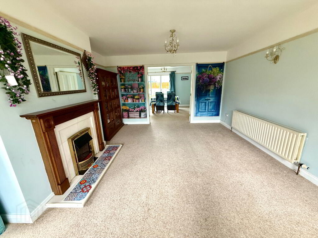 Lounge 18'1 x 13' (to widest points) Dual aspects, marble fireplace and hearth with wooden surround, picture rail, double doors to dining room, wall light.
