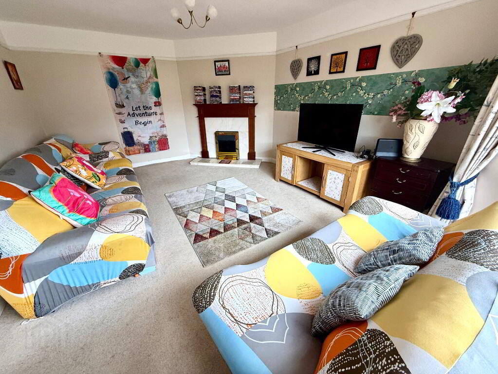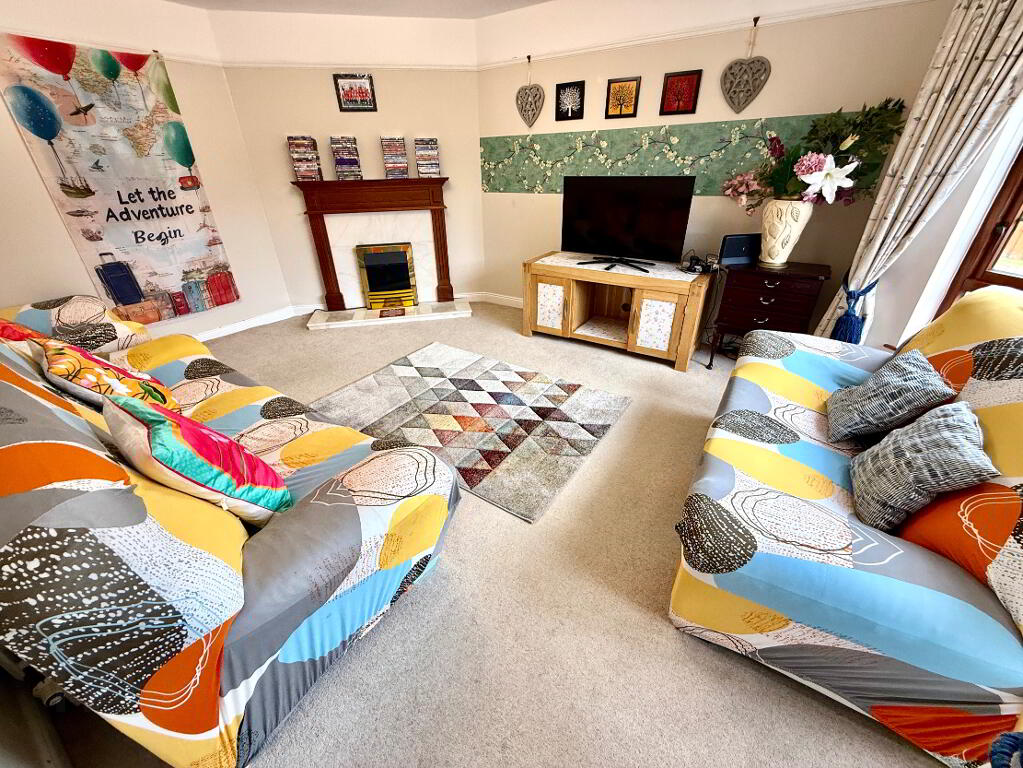 Family Room 16'5 x 12'4 (to widest points) Bay windows, marble fireplace and hearth with wooden surround, picture rail.