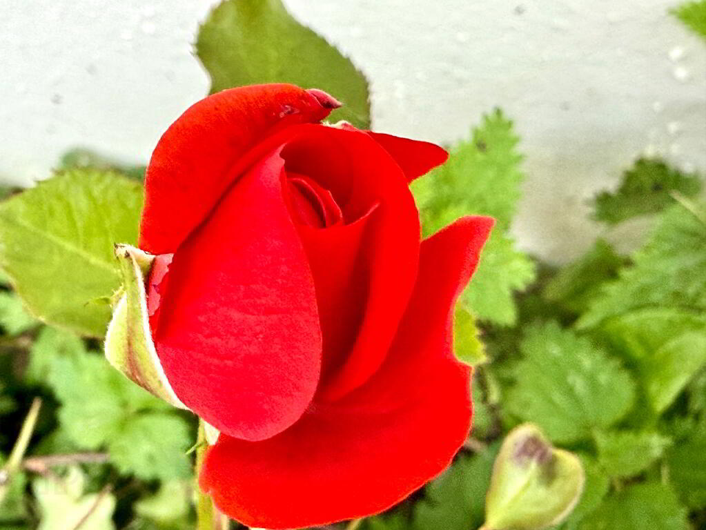 Garden to front enclosed by wall enhanced with an abundance of plants, shrubs and occasional trees.