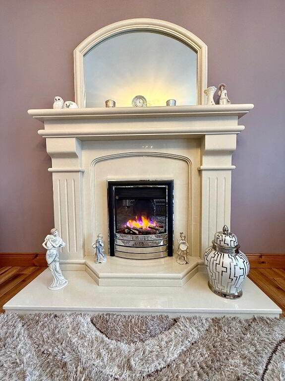 Lounge 16'4 x 12'8 Dual aspect, marble fireplace and hearth with matching mantle mirror and electric fire insert, laminated wooden floor.